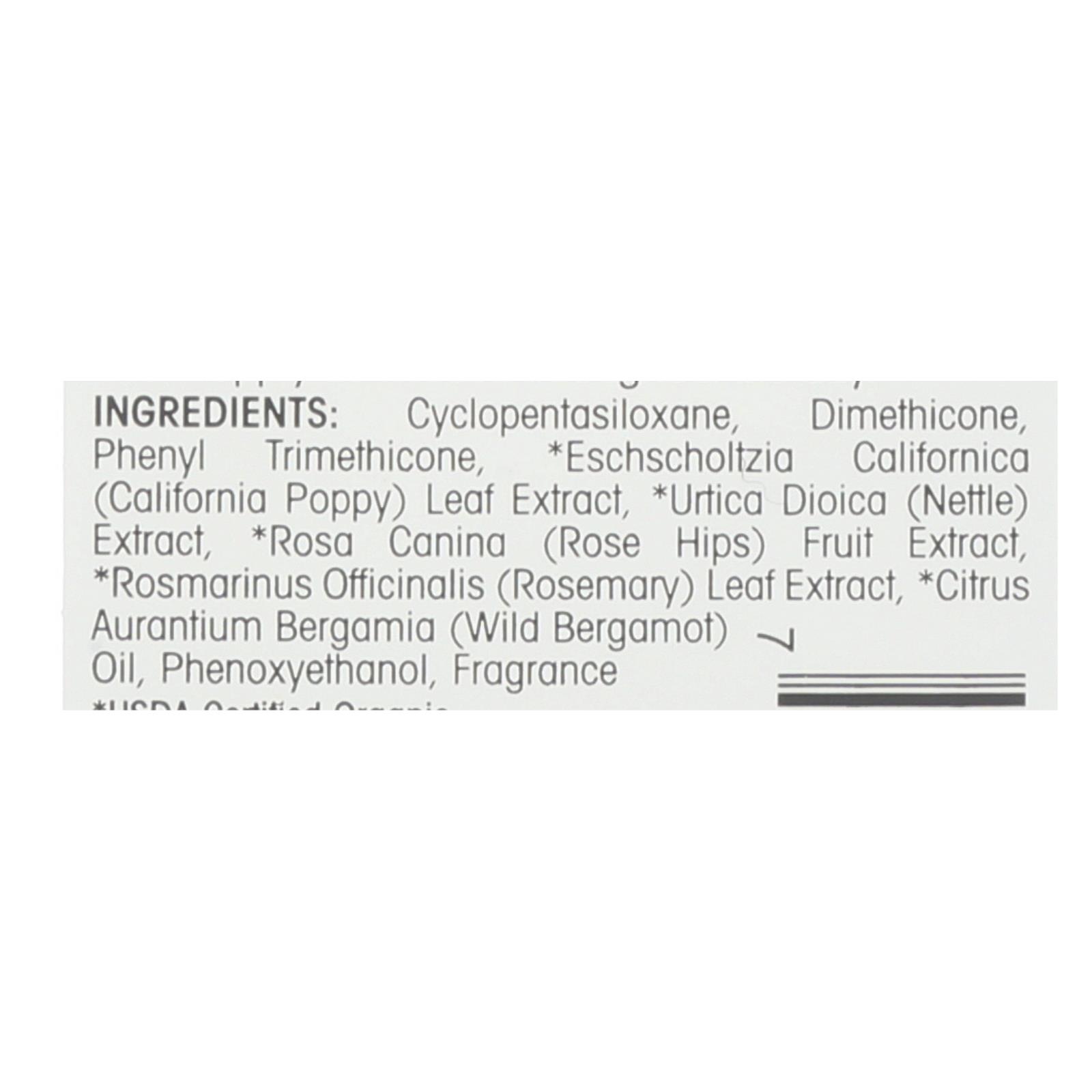 ingredients : cyclopentasiloxane;dimethicone;phenyl trimethicone;eschscholtzia californica;california poppy;leaf extract;urtica dioica;nettle;extract;rosa canina;rose hips;fruit extract;rosmarinus officinalis;rosemary;citrus aurantium bergamia;wild bergamot;oil;phenoxyethanol;fragrance