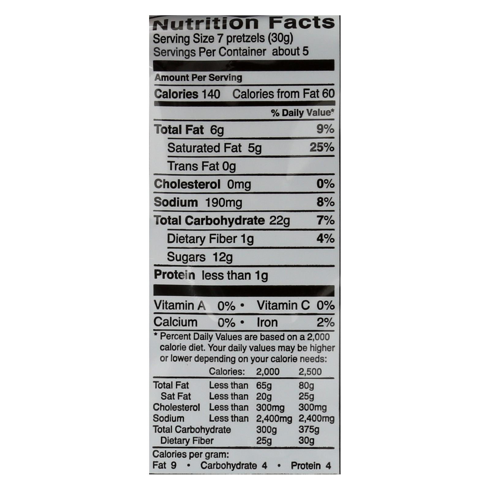 - Each pouch contains 5.5 oz of chocolate-covered pretzels