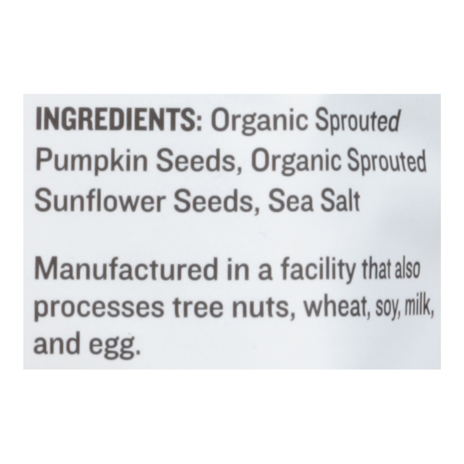 Organic pumpkin seeds, organic sunflower seeds, sea salt.