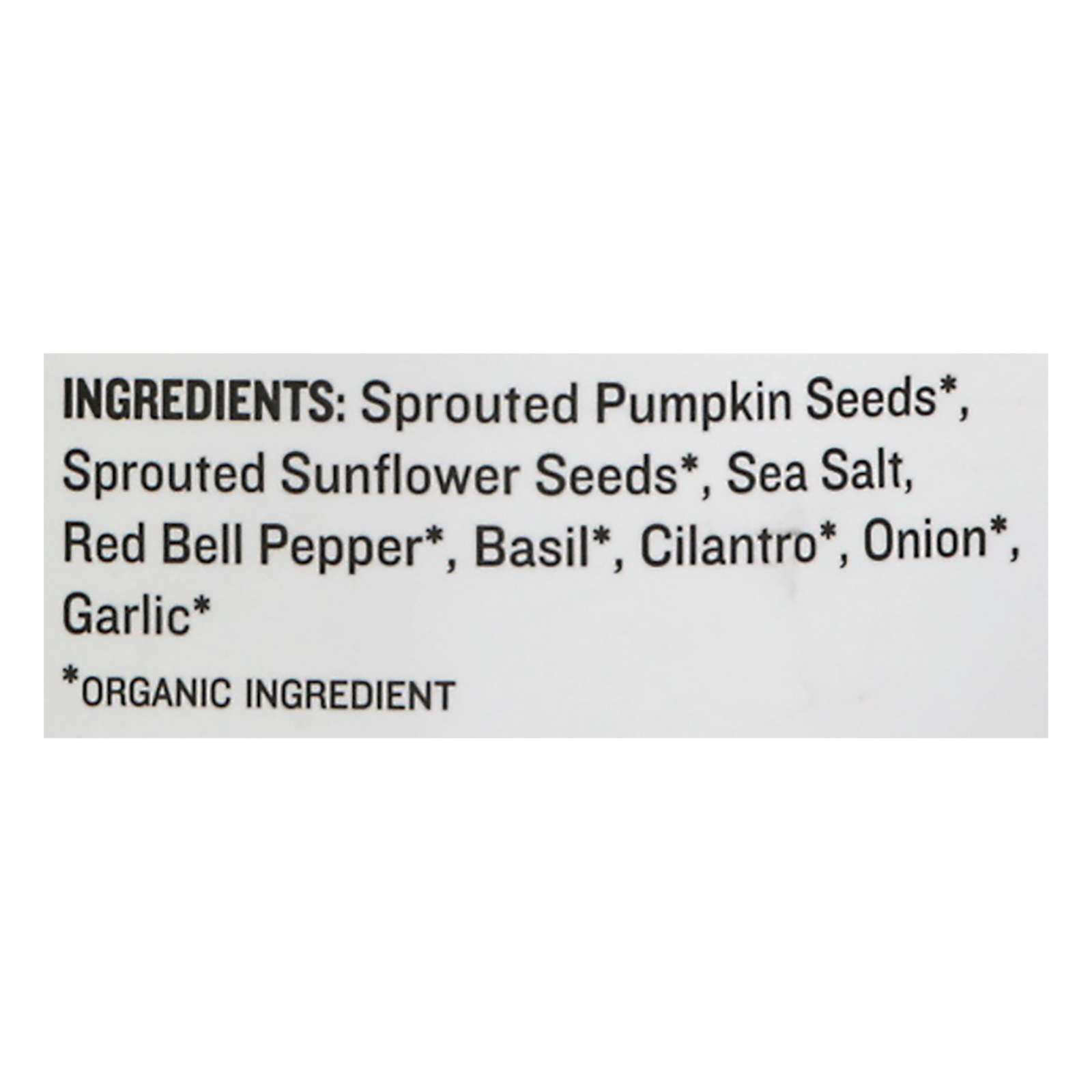 Sprouted pumpkin seeds, sprouted sunflower seeds, sea salt, basil, cilantro, onion, garlic.