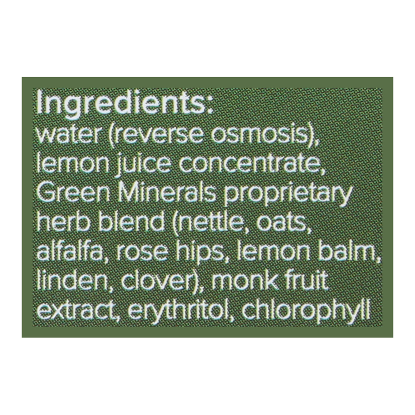 This tonic features a proprietary blend of green herbs, including nettle, oats, alfalfa, rose hips, lemon balm, linden, and clover-plants traditionally used in herbal wellness for their nourishing properties. Enhanced with lemon juice concentrate, chlorophyll, and naturally sweetened with monk fruit extract and erythritol, each sip offers a crisp, botanical experience.
