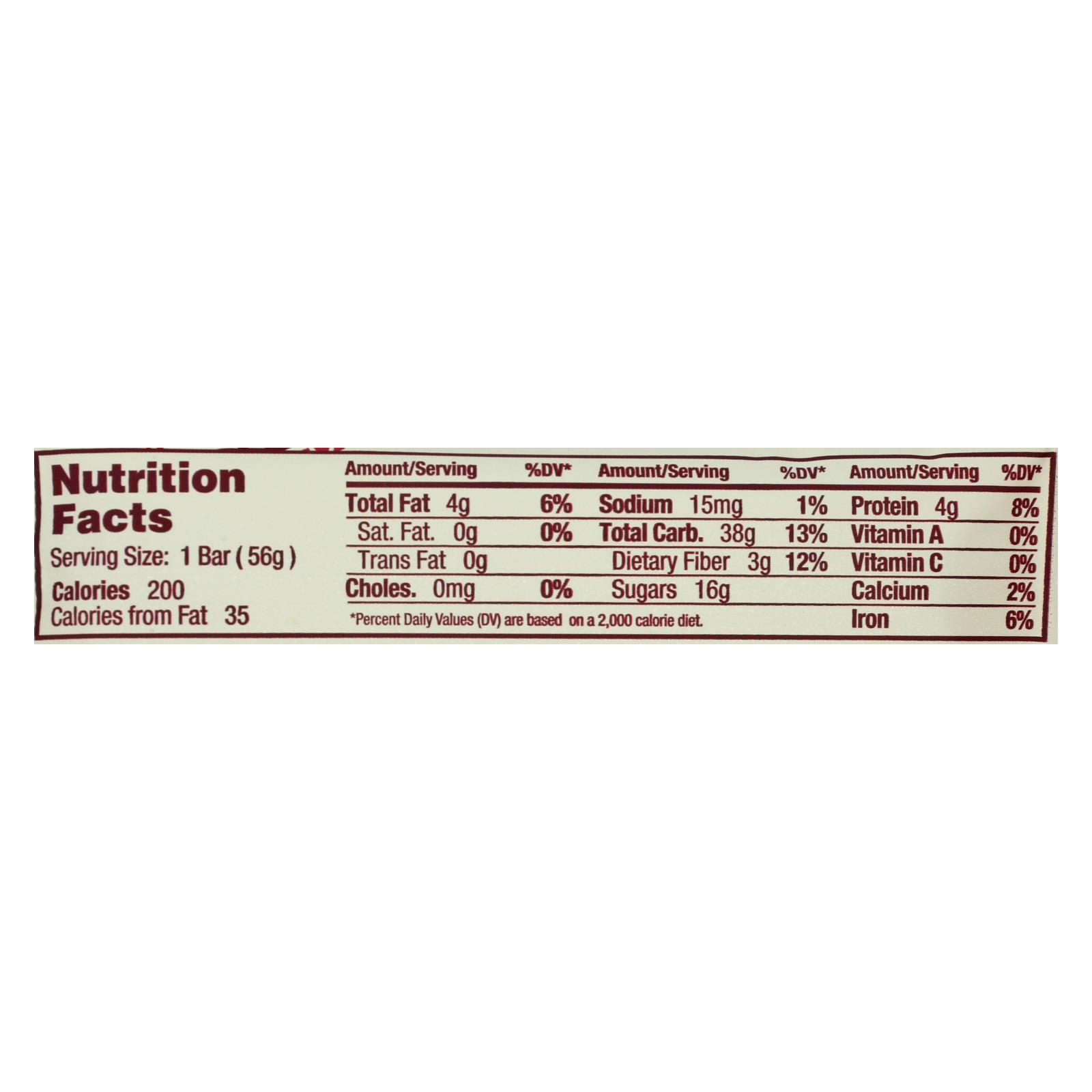 This bar features a blend of organic cherries, cranberries, and raisins, bringing together the naturally sweet and tart notes of berries traditionally enjoyed for their vibrant taste. Organic gluten-free rolled oats and almond butter add satisfying texture and plant-based nourishment, while organic brown rice syrup provides a gentle sweetness. Every ingredient is thoughtfully chosen for quality and sustainability.