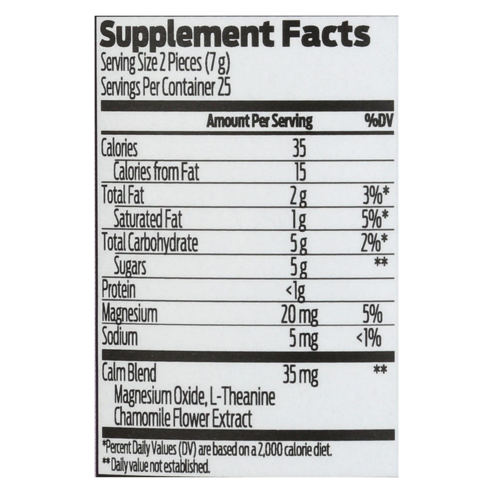 Good Day Chocolate Calm Supplement for Kids offers 50 non-GMO, fair-trade milk chocolate pieces with chamomile and L-theanine to support gentle relaxation