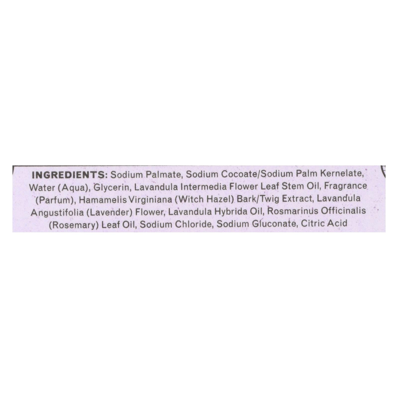 ingredients : sodium palmate;sodium cocoate/sodium palm kernelate;water;aqua;glycerin;lavandula intermedia flower leaf stem oil;fragrance;parfum;hamamelis virginiana;witch hazel;bark/twig extract;lavandula angustifolia;lavender;flower;lavandula hybrida oil;rosmarinus officinalis;rosemary;leaf oil;sodium chloride;sodium gluconate;citric acid