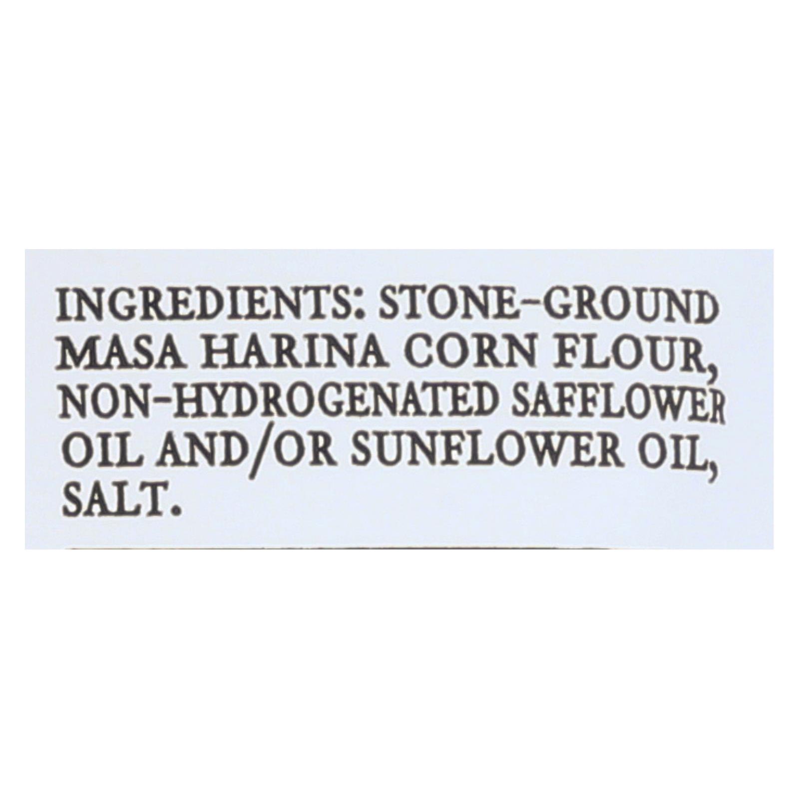 Stone-ground masa harina corn flour, non-hydrogenated safflower oil and/or sunflower oil, salt.