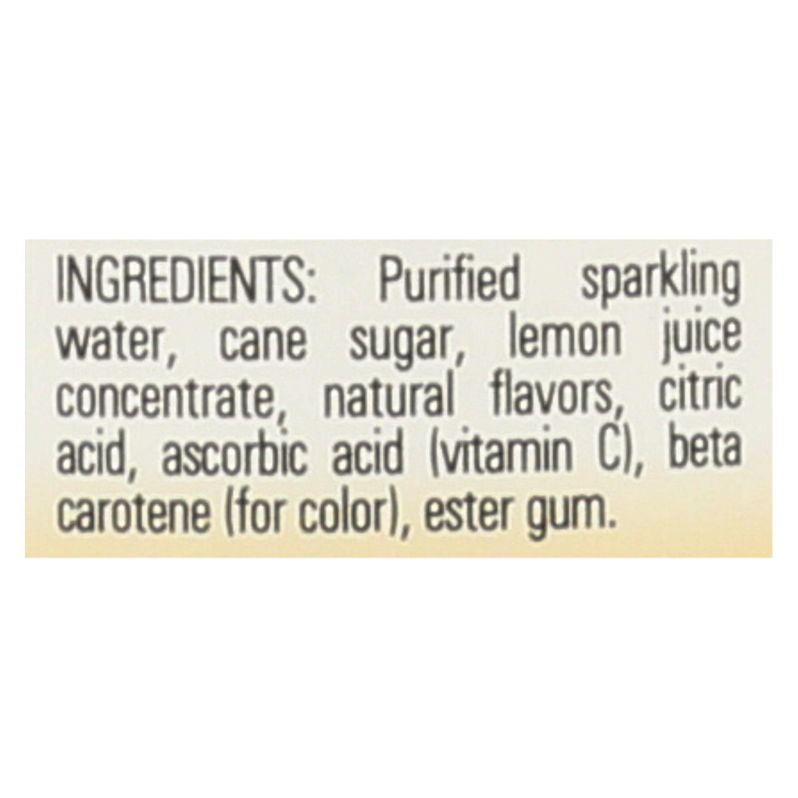 Purified sparkling water, cane sugar, lemon juice concentrate, natural flavors, citric acid, ascorbic acid (vitamin C), beta carotene (for color), ester gum.