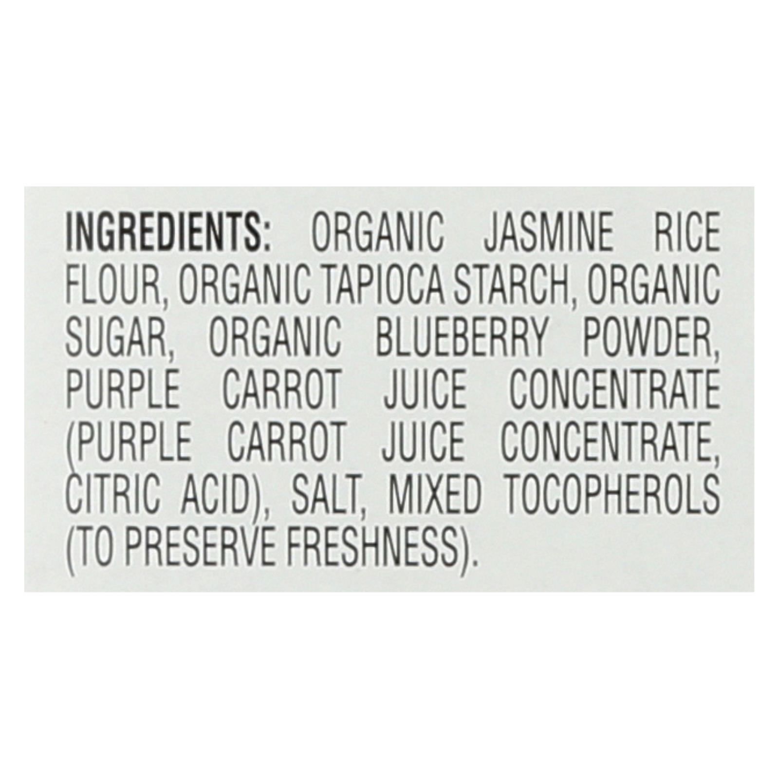Each teether is made with organic jasmine rice flour and organic tapioca starch for a gentle texture that dissolves easily. The addition of organic blueberry powder and purple carrot juice concentrate brings a touch of natural fruit and vegetable goodness, commonly used in wholesome snacks for little ones.