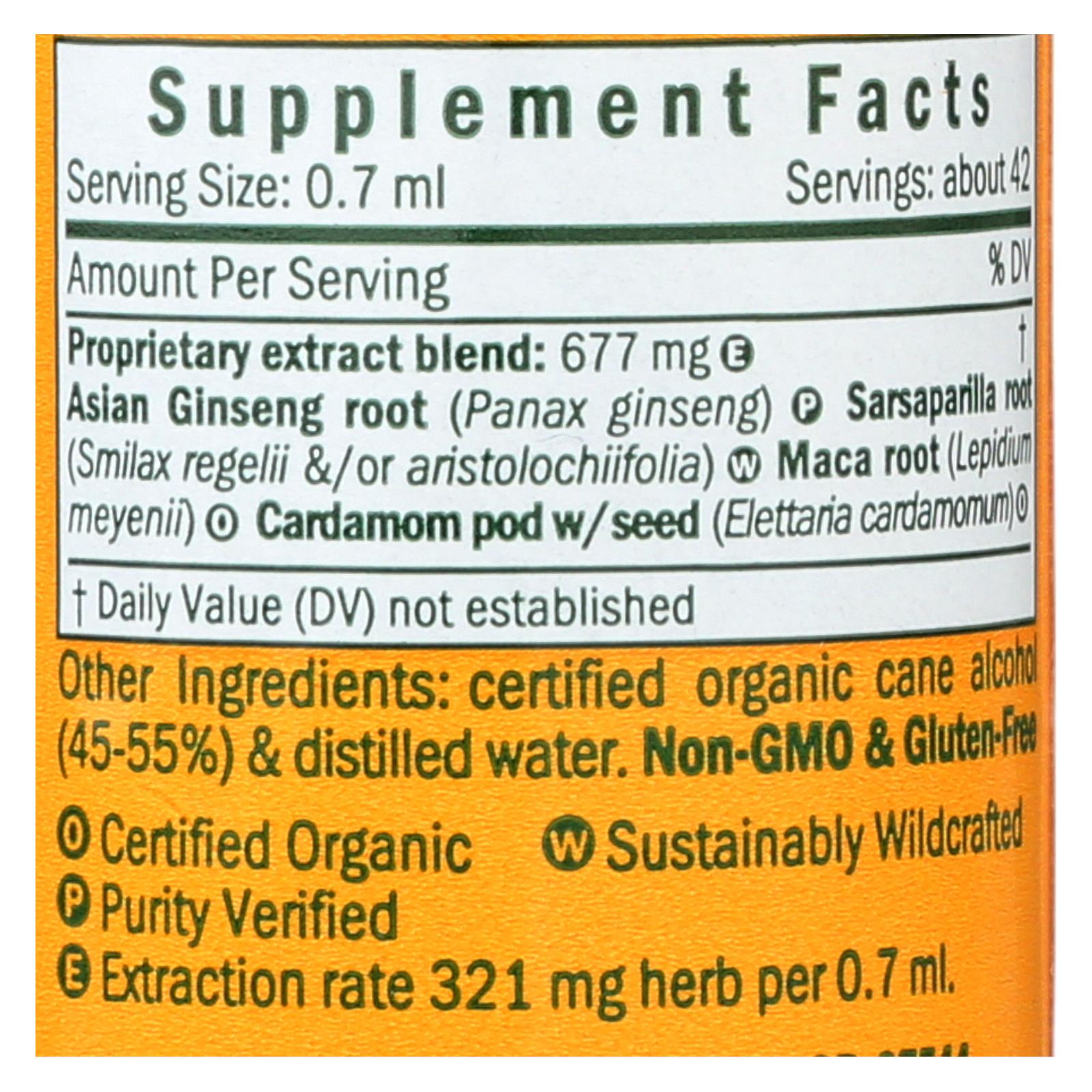 Proprietary extract blend of Asian ginseng, sarsaparilla, maca, and cardamom.