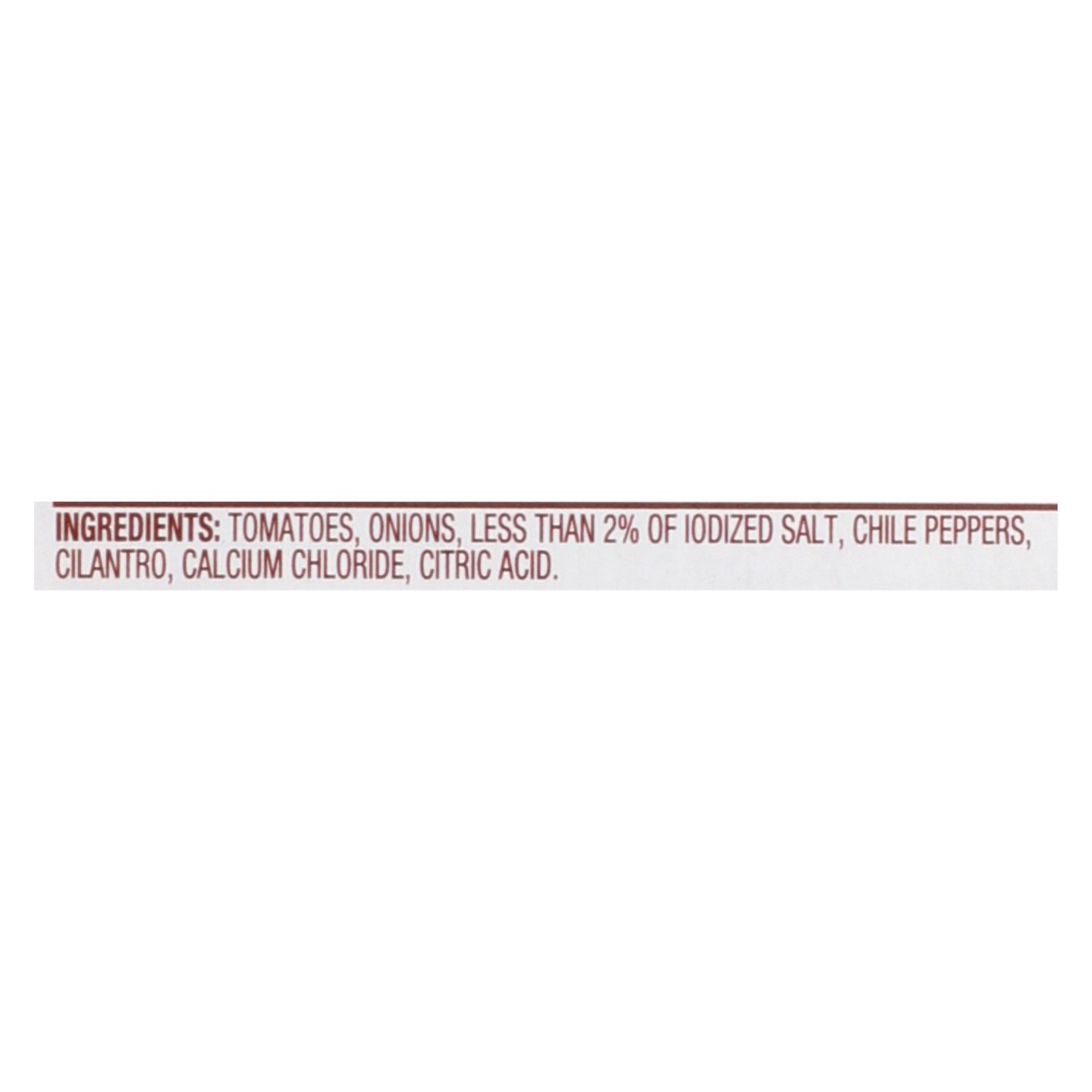 Tomatoes, onions, less than 2% of iodized salt, chile peppers, cilantro, calcium chloride, citric acid.