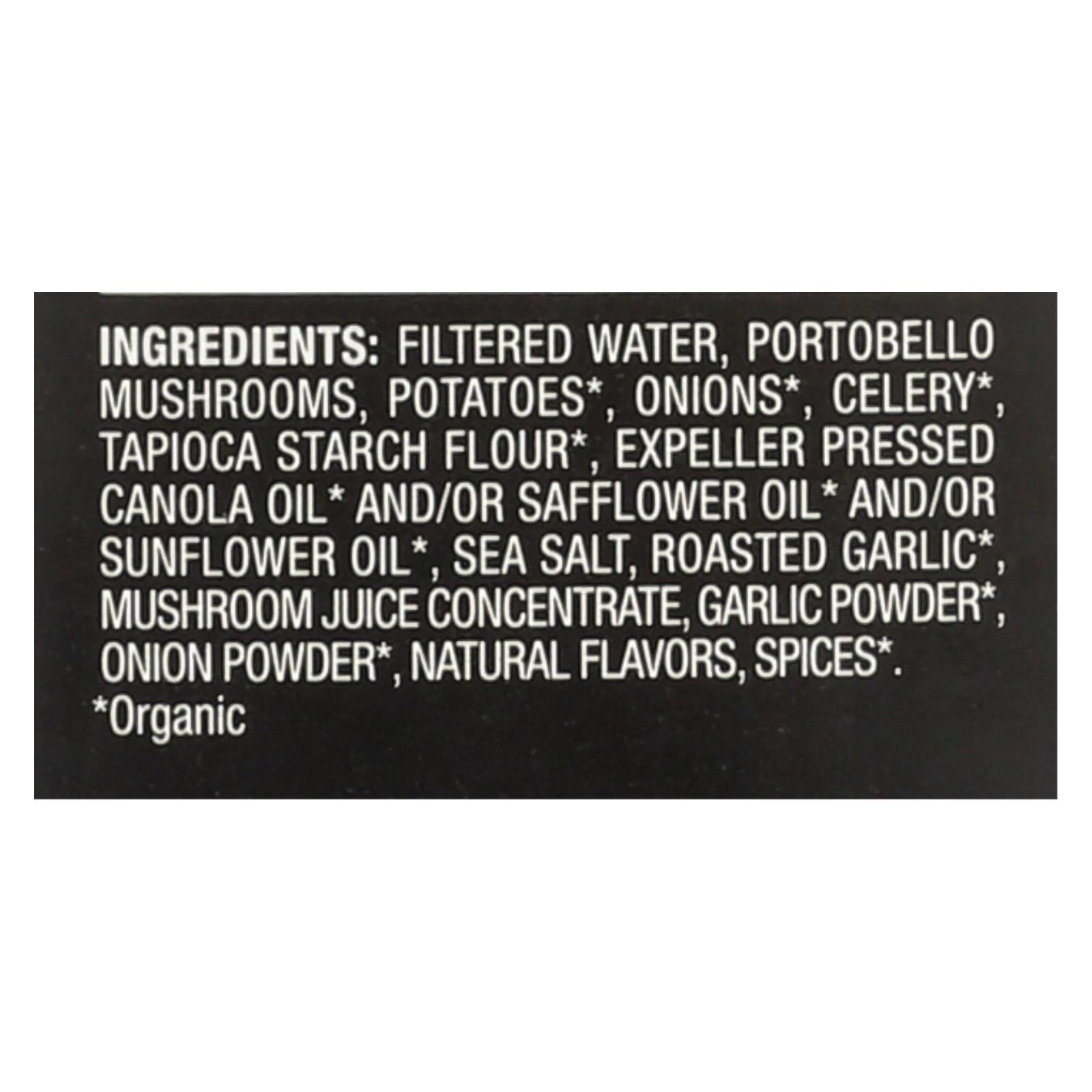Water, portobello mushrooms, potatoes, onions, celery, tapioca starch flour, canola oil* and/or safflower oil* and/or sunflower oil, sea salt, roasted garlic, mushroom juice concentrate, garlic powder, onion powder, natural flavors, black pepper.