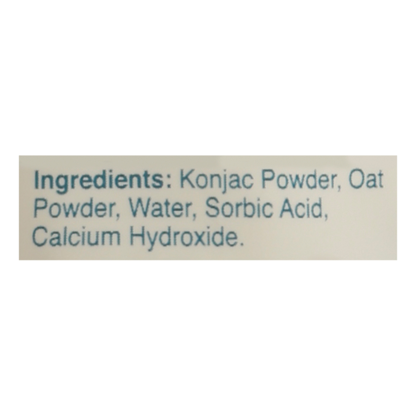 Konjac powder, oat powder, water, sorbic acid, calcium hydroxide
