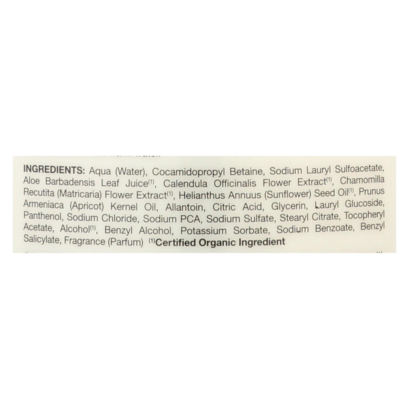 Aqua (water), cocamidopropyl betaine, sodium lauryl sulfoacetate, aloe barbadensis leaf juice¹, calendula officinalis flower extract¹, chamomilla recutita (matricaria) flower extract¹, helianthus annuus (sunflower) seed oil¹, prunus armeniaca (apricot) kernel oil, allantoin, citric acid, glycerin, lauryl glucoside, panthenol, sodium chloride, sodium PCA, sodium sulfate, stearyl citrate, tocopheryl acetate, alcohol¹, benzyl alcohol, potassium sorbate, sodium benzoate, benzyl salicylate, fragrance (parfum).