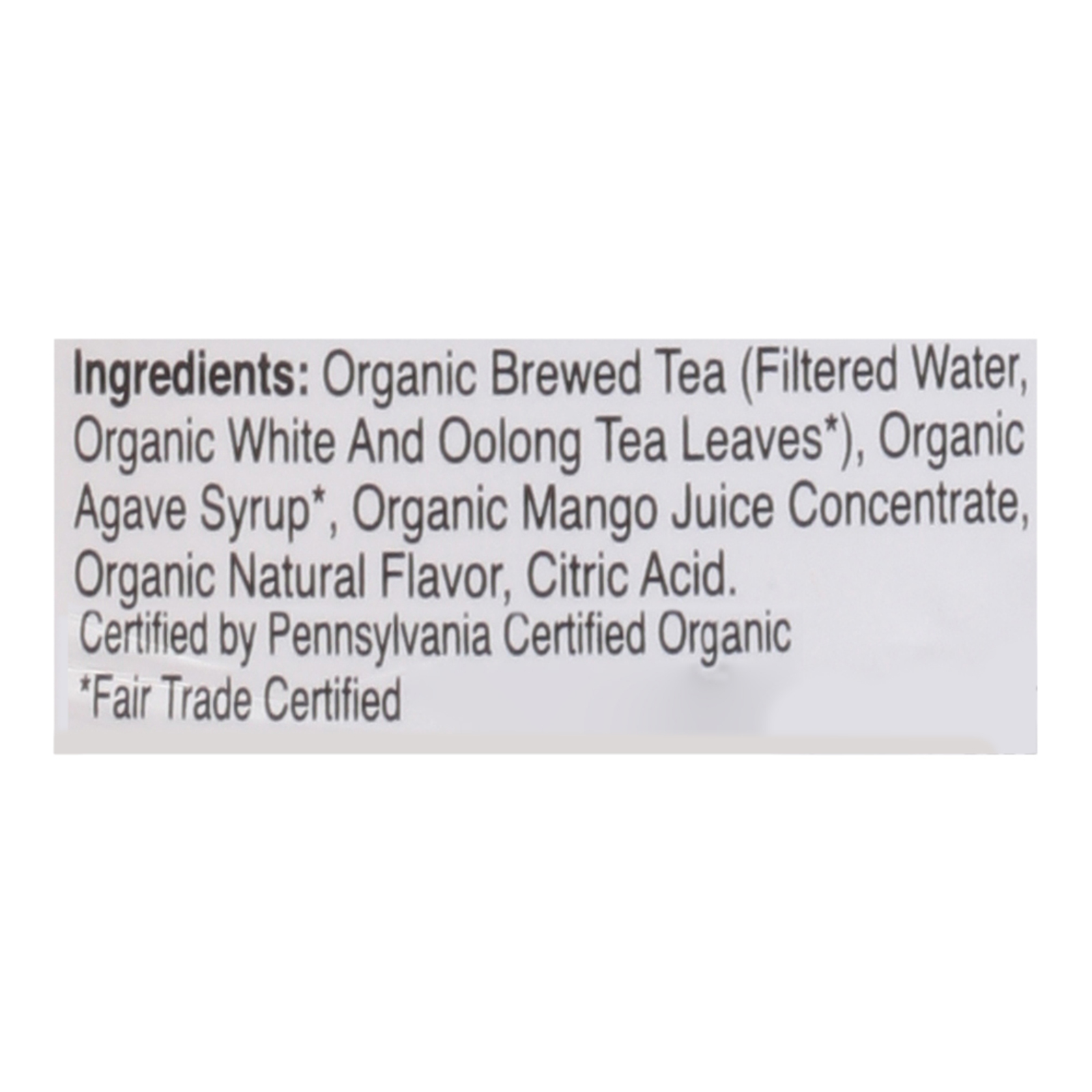 White tea, mango flavor (organic), and other 95%+ organic ingredients.