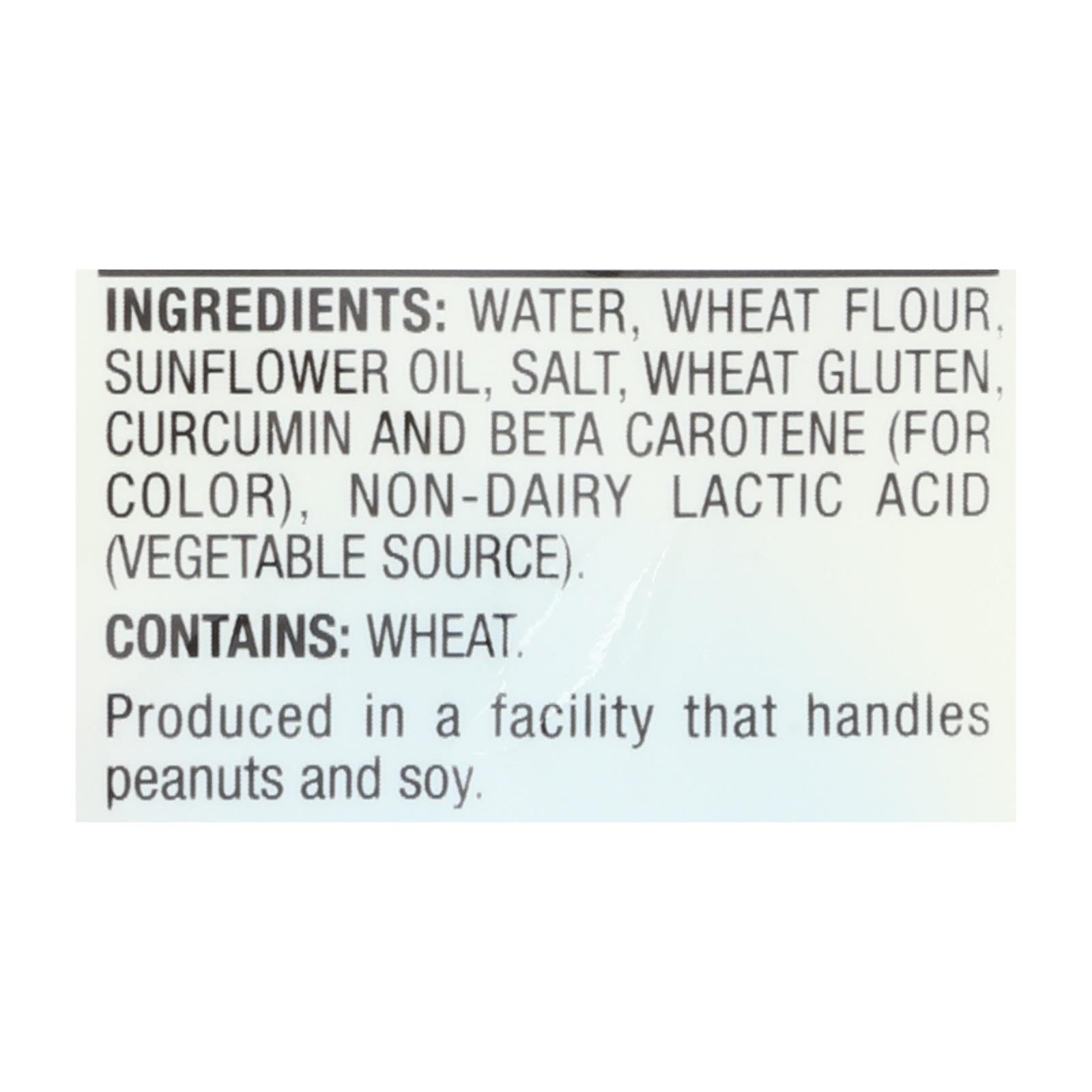 ingredients : water;wheat flour;sunflower oil;salt;wheat gluten;curcumin and beta carotene;for color;non-dairy lactic acid;vegetable source