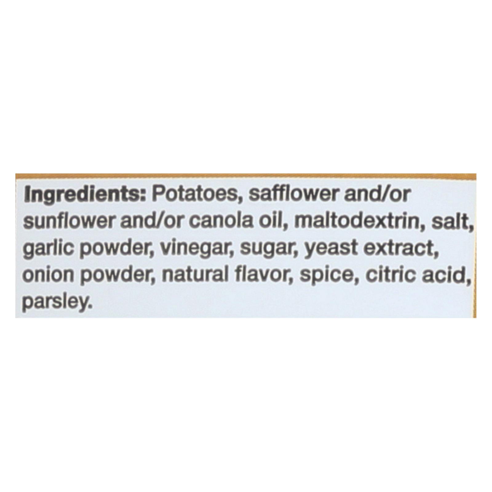 Potatoes, safflower and/or sunflower and/or canola oil, maltodextrin, salt, garlic powder, vinegar, sugar, yeast extract, onion powder, natural flavor, spice, citric acid, parsley.