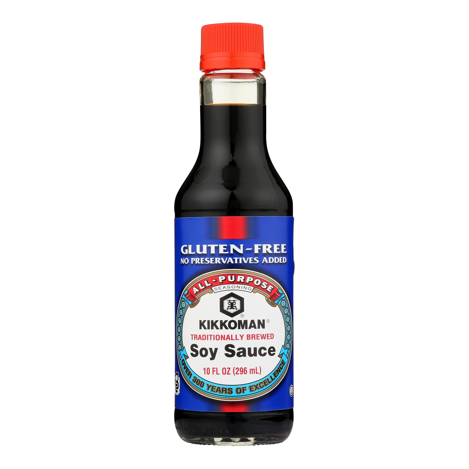 Kikkoman gluten-free soy sauce is made with soybeans, rice, salt and water. These four simple ingredients are brewed and aged for a rich and savory taste. Our soy sauce is has the same flavor-enhancing qualities of traditional soy sauce but is certified gluten-free. Each 10 oz. Bottle of soy sauce is preservative-free.