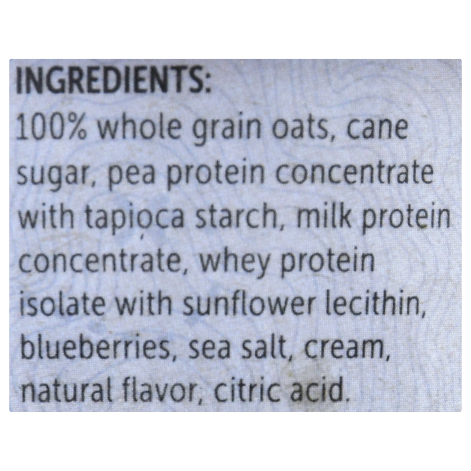 100% whole grain oats; cane sugar; pea protein concentrate with tapioca starch; milk protein concentrate; whey protein isolate with sunflower lecithin; blueberries; sea salt; cream; natural flavor; citric acid