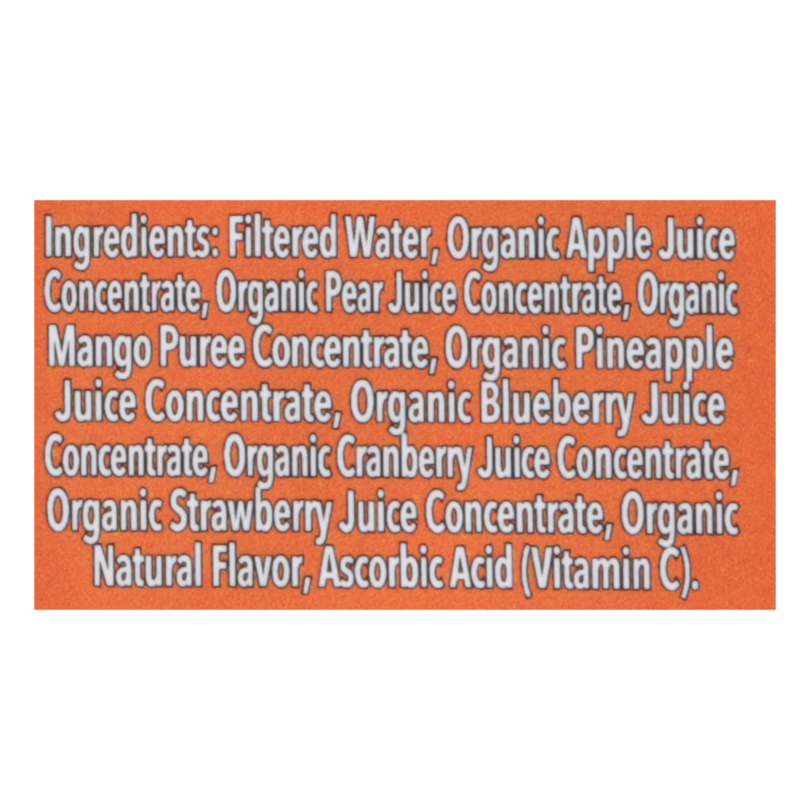 Organic fruit juice blend (specific fruits not listed), over 95% organic ingredients.