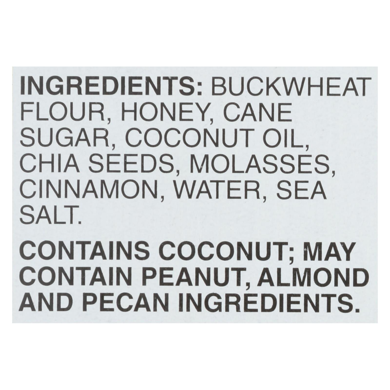 ingredients : buckwheat flour;honey;cane sugar;coconut oil;chia seeds;molasses;cinnamon;water;sea salt