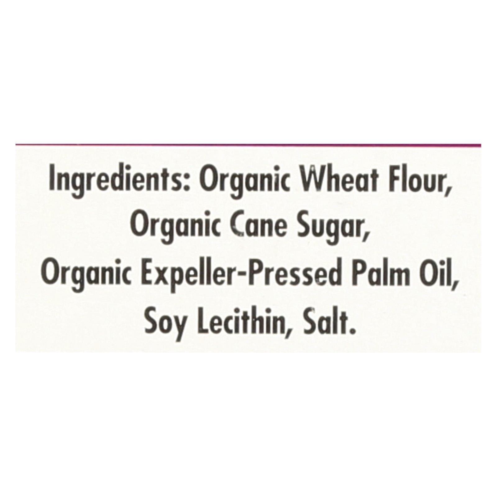 Organic wheat flour, organic cane sugar, organic expeller-pressed palm oil, soy lecithin, salt.