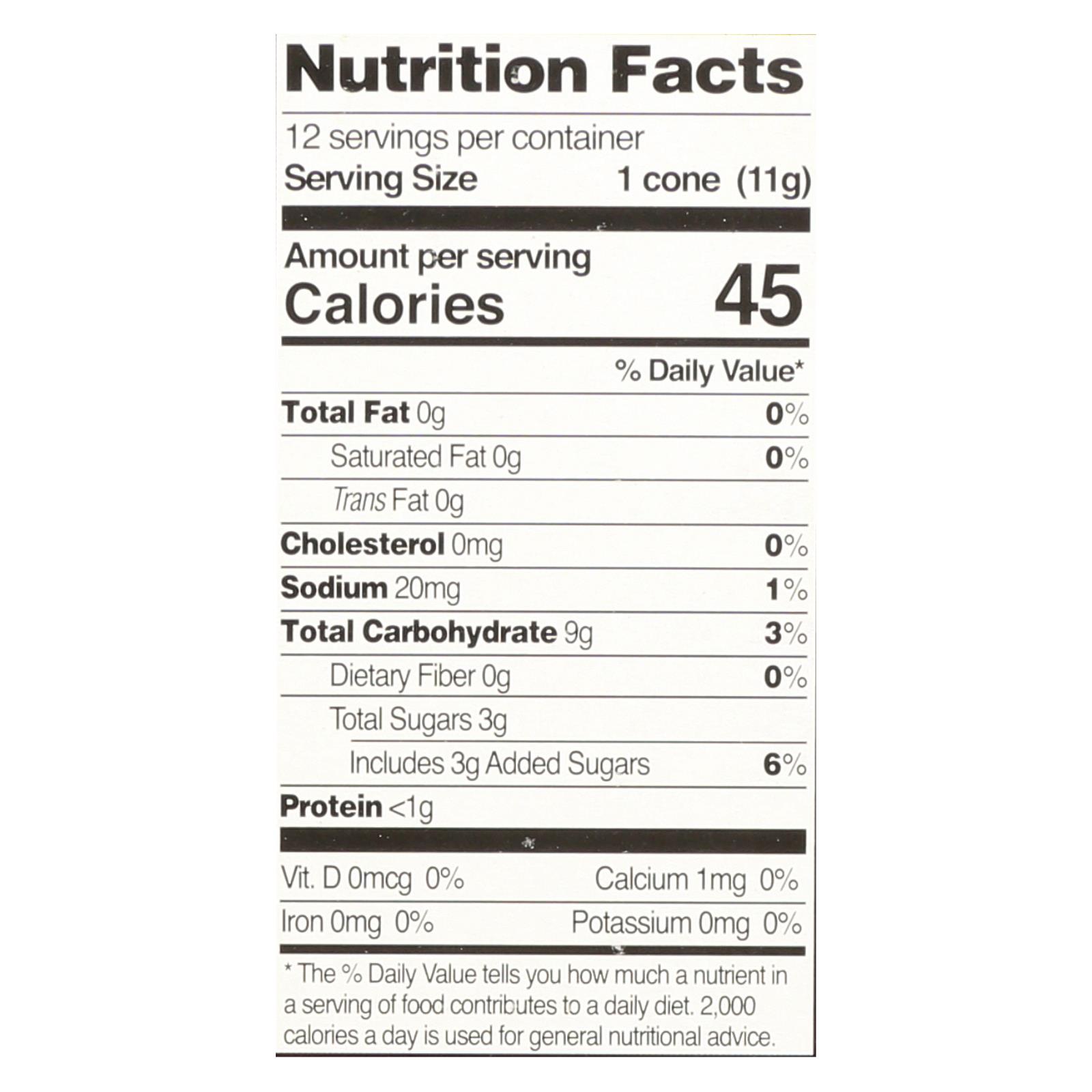 - Each box contains 12 traditional-style rolled cones (4.6 oz per box)