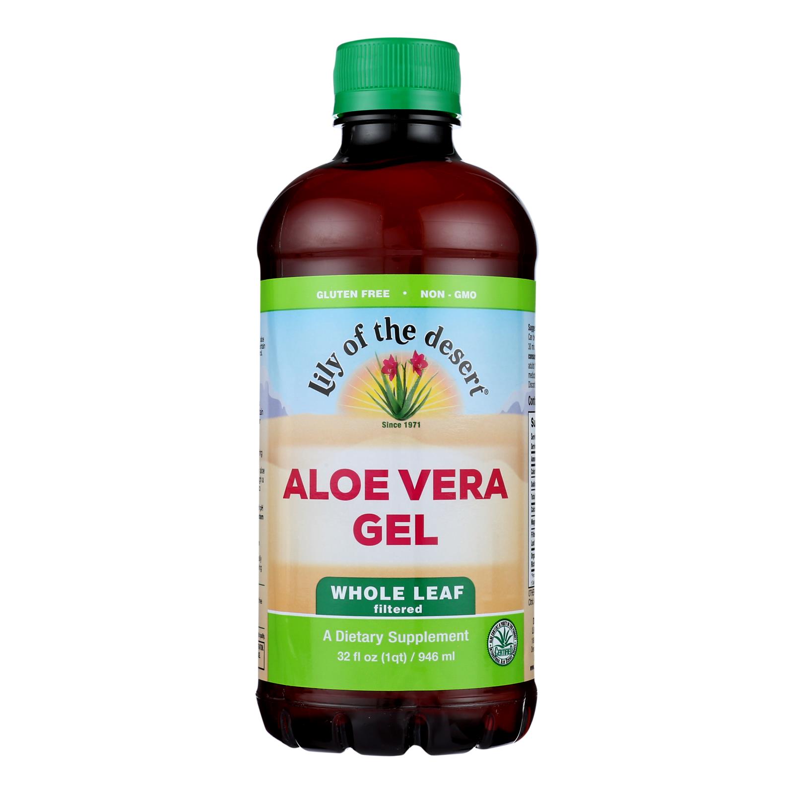 Lily of the Desert Aloe Vera Gel Whole Leaf is a 32 oz, organic, non-GMO, kosher supplement supporting immunity and digestive health