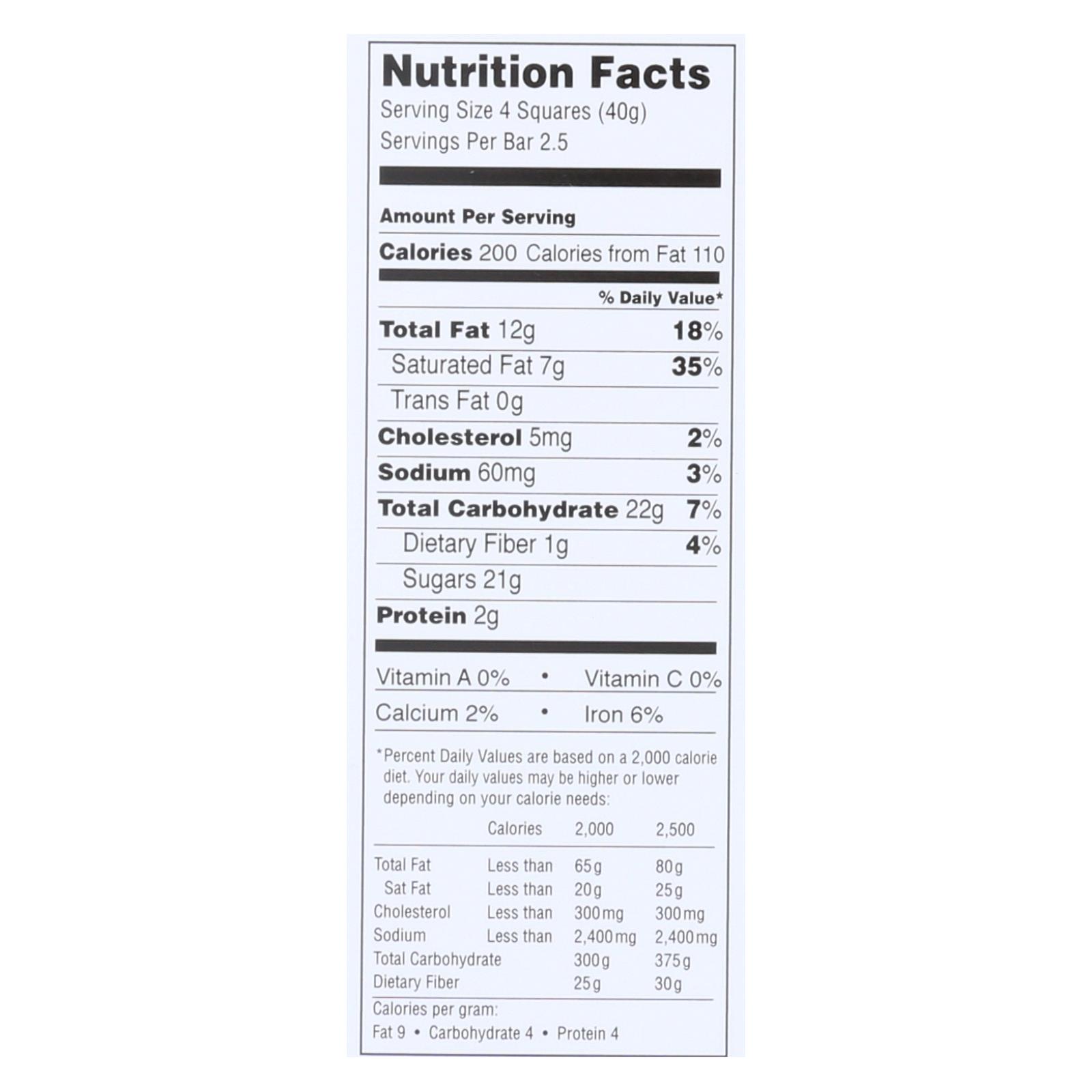 - Serving size: 3.5 oz bar; 2.5 servings per bar