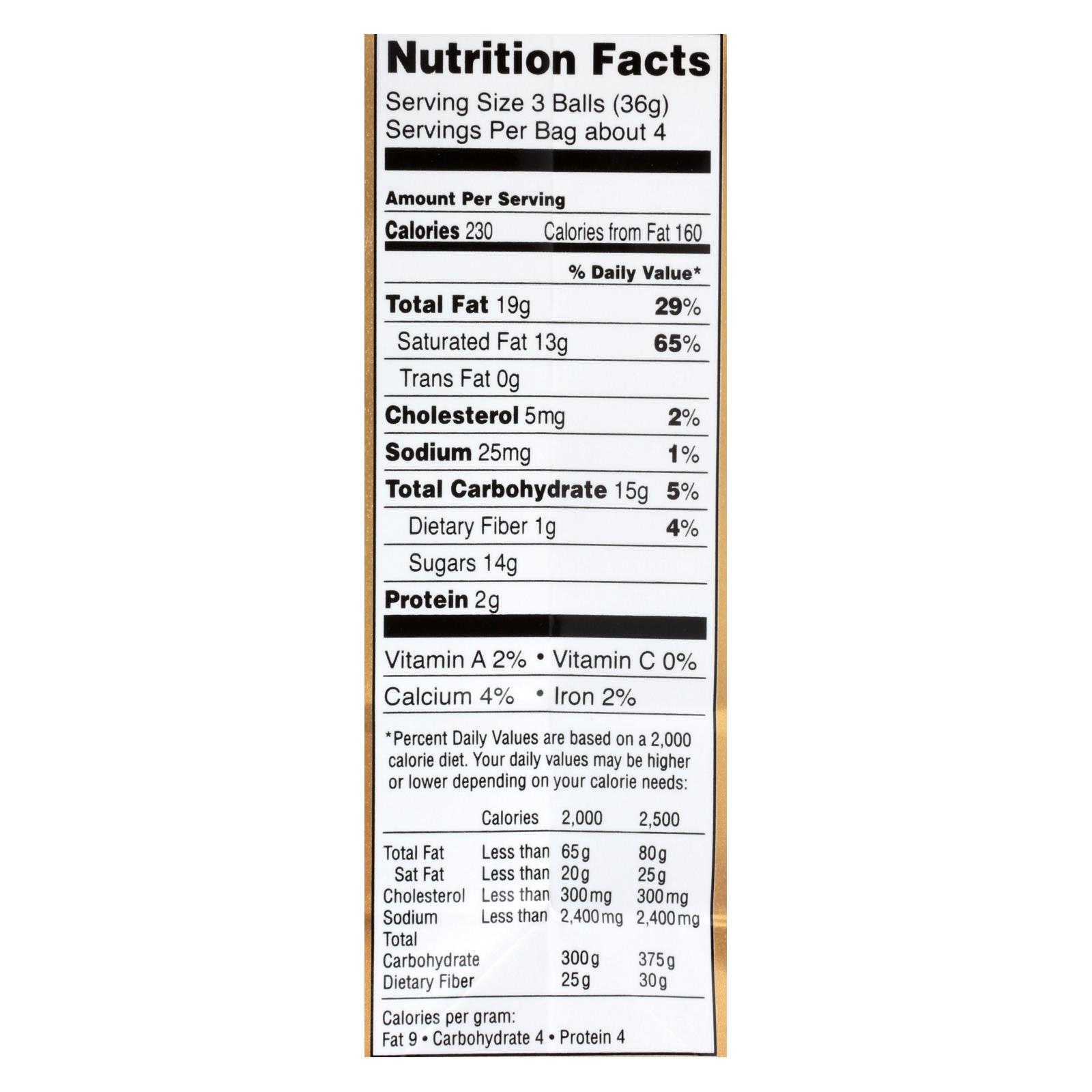 - Serving size: 4 truffles (about 4 servings per 5.1 oz bag)