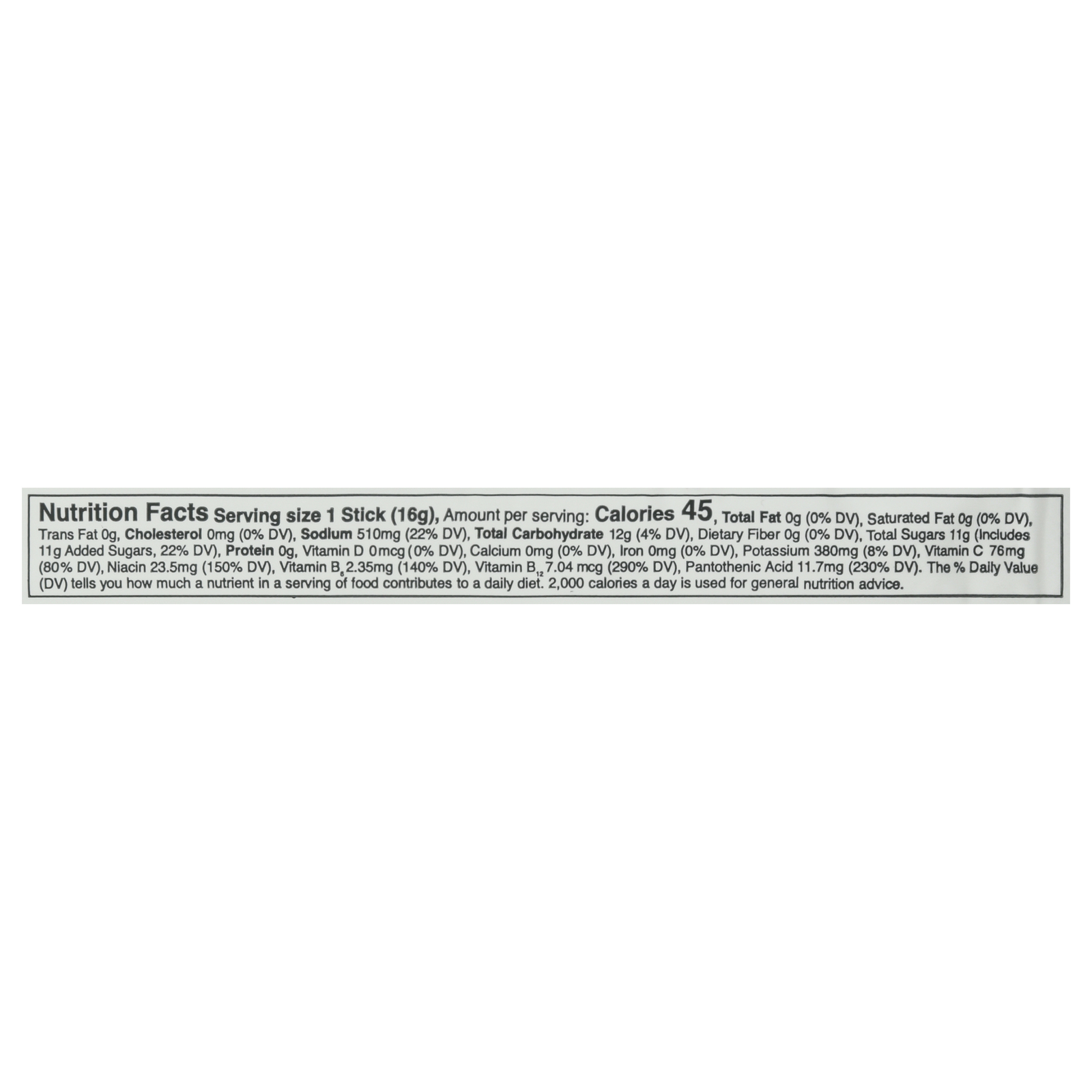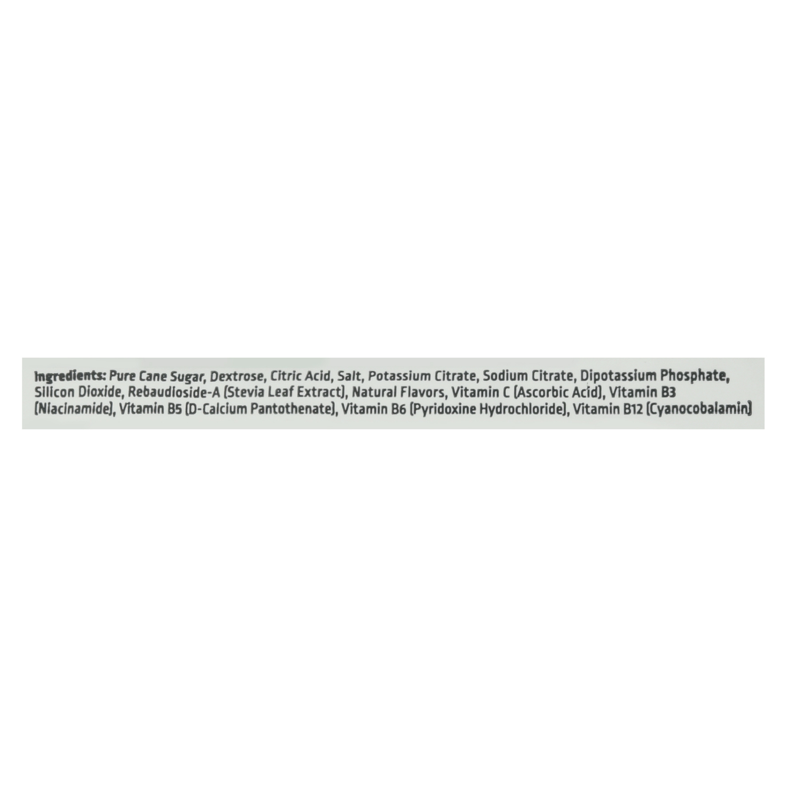 ingredients : pure cane sugar;dextrose;citric acid;salt;potassium citrate;sodium citrate;dipotassium phosphate;silicon dioxide;rebaudioside-a (stevia leaf extract);natural flavors;vitamin c (ascorbic acid);vitamin b3 (niacinamide);vitamin b5 (d-calcium pantothenate);vitamin b6 (pyridoxine hydrochloride);vitamin b12 (cyanocobalamin)