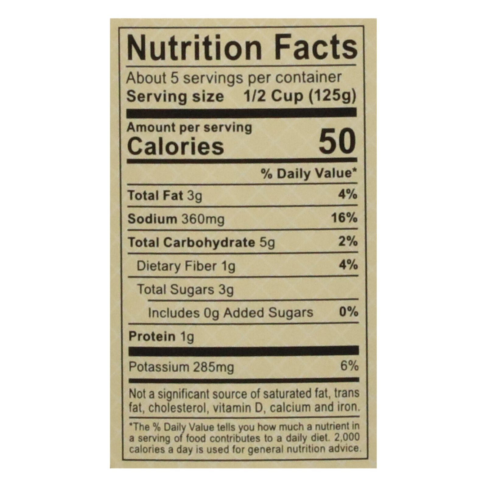 - Serving size: Not specified; approximately six servings per 24 oz jar