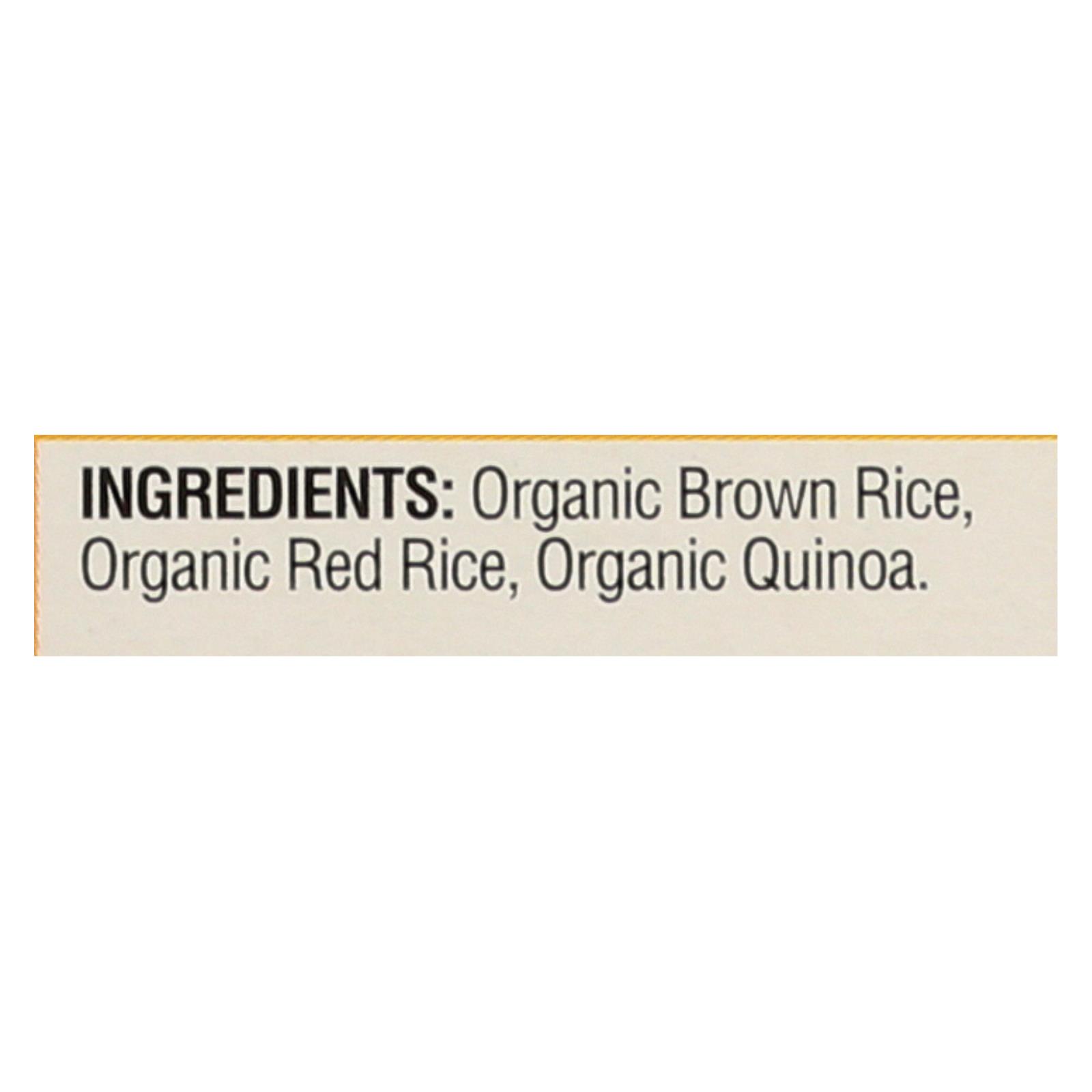 Organic brown rice, organic red rice, organic quinoa