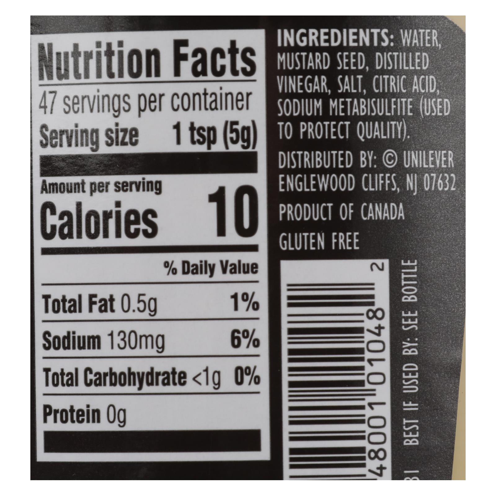 ingredients : water;mustard seed;distilled vinegar;salt;citric acid;sodium metabisulfite;used to protect quality