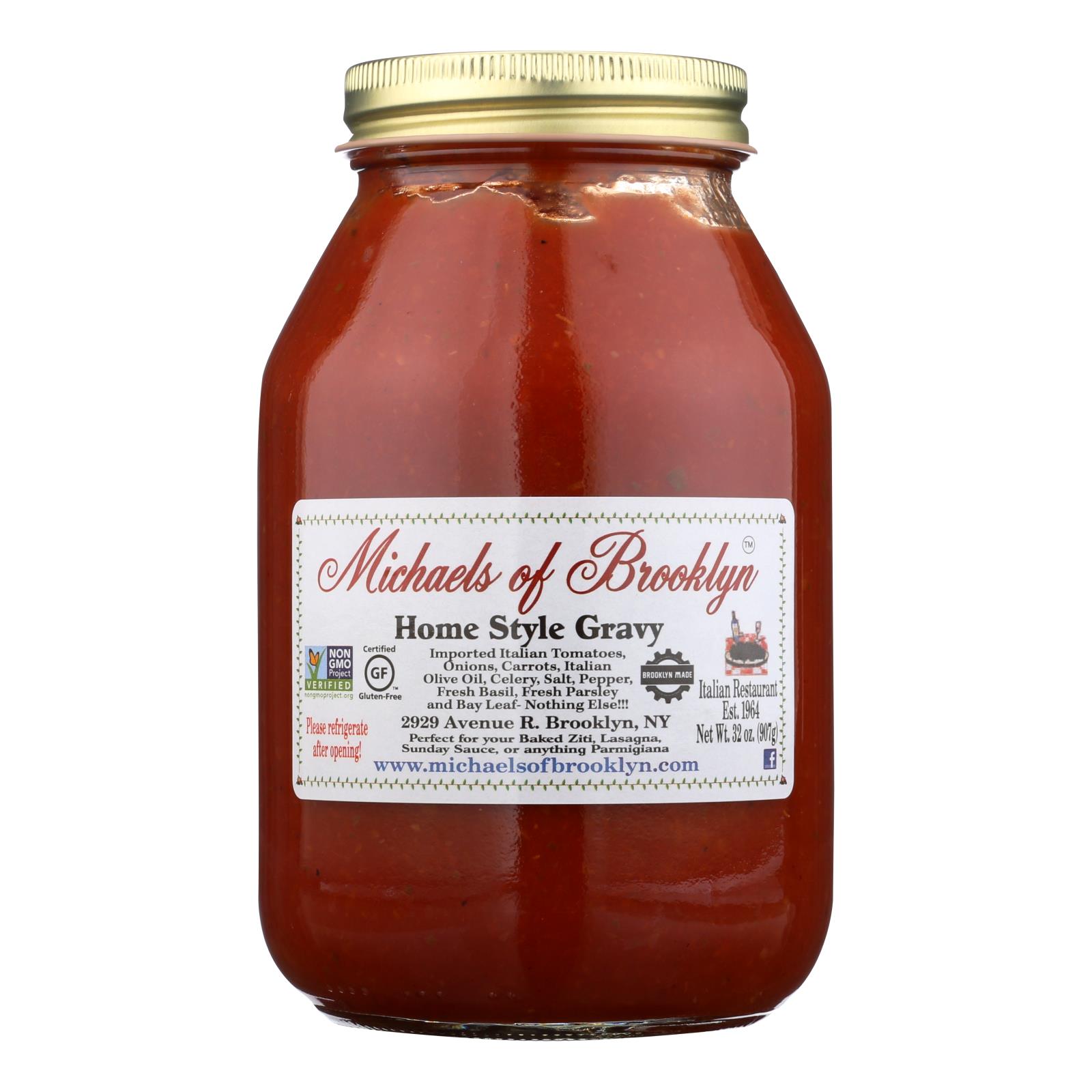 Michaels of brooklyn home style gravy is the taste of traditional italian meals. Celebrated in the michaels of brooklyn restaurant since 1964, this sauce can now be enjoyed in your home. The ingredients in each 32 oz. Jar are simple and perfect. Our recipe includes imported italian tomatoes, onions, carrots, italian olive oil, celery, salt, pepper, fresh basil, fresh parsley and bay leaves. Enjoy it over pasta or any parmagiana dish. See nutrition facts panel for allergens.