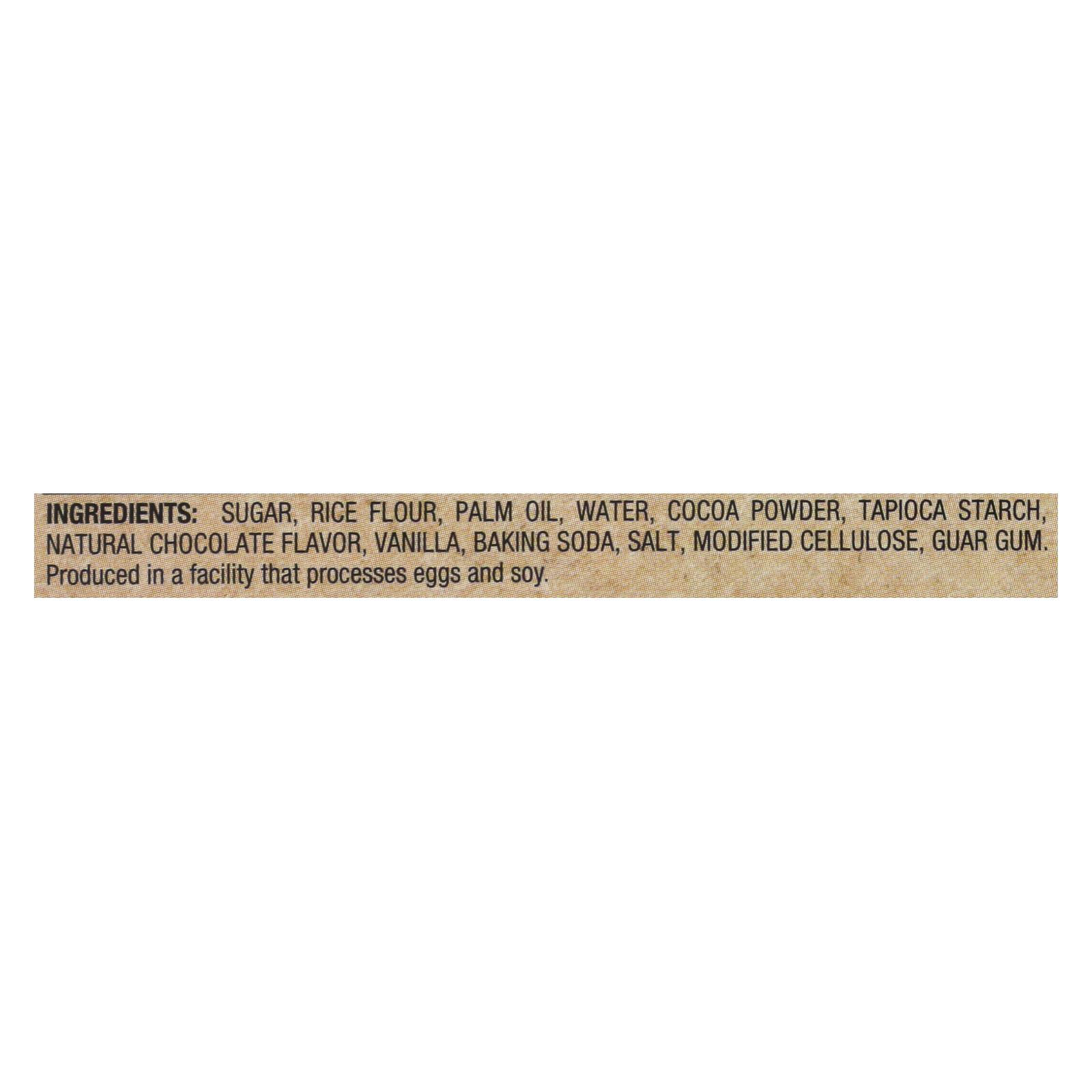 Cane sugar, rice flour, palm oil, water, cocoa powder, tapioca starch, natural flavors, baking soda, salt, modified cellulose, guar gum.