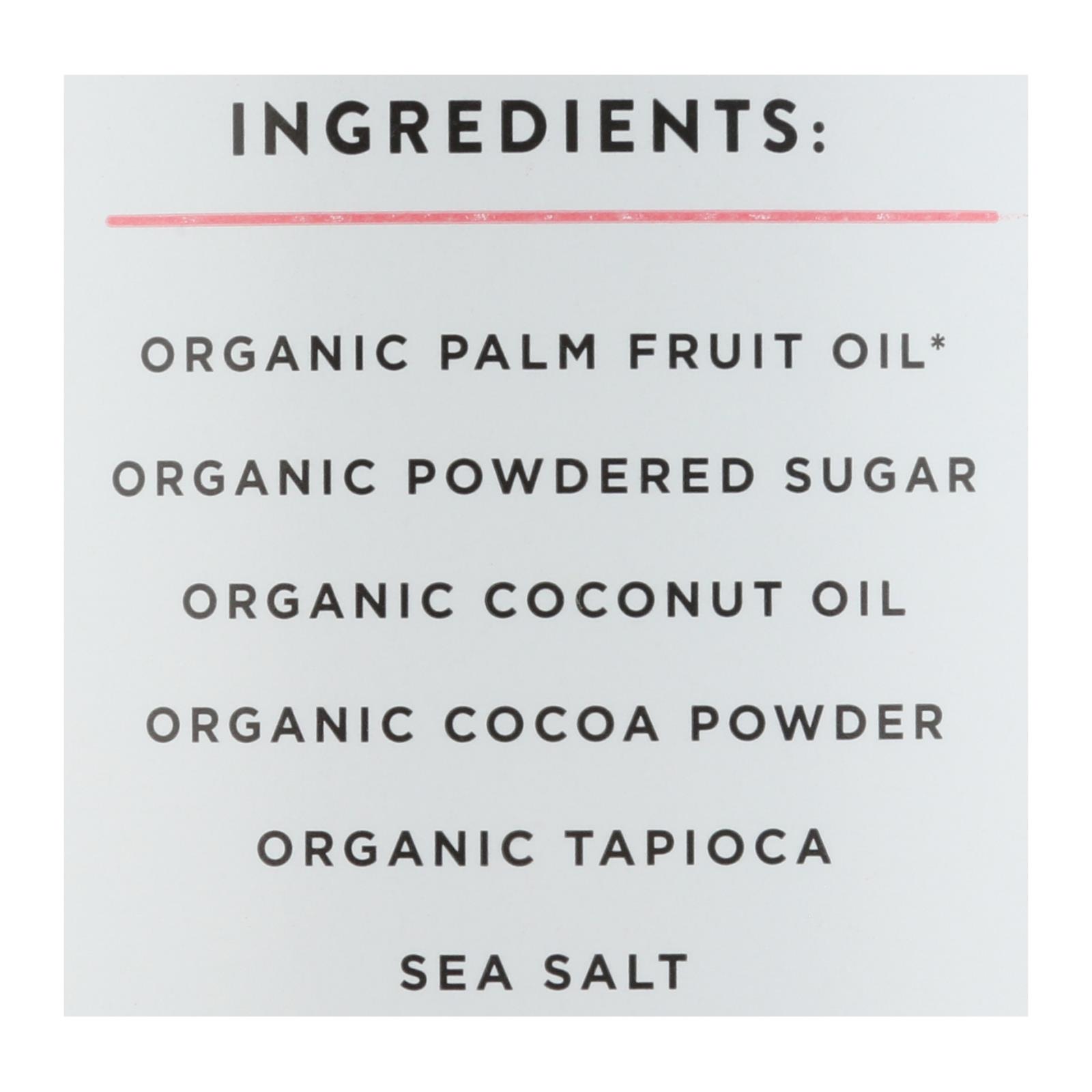 Miss Jones Organic Chocolate Frosting is a vegan, USDA-certified organic treat, gluten-free and GMO-free, sold in a convenient 6-pack of 320g containers