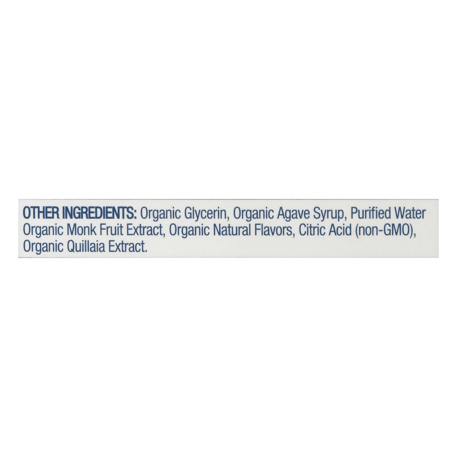 Organic agave, iron, vitamin C, vitamin D3, vitamin E, vitamin B1, vitamin B2, vitamin B6, natural grape flavor. (70% organic ingredients)