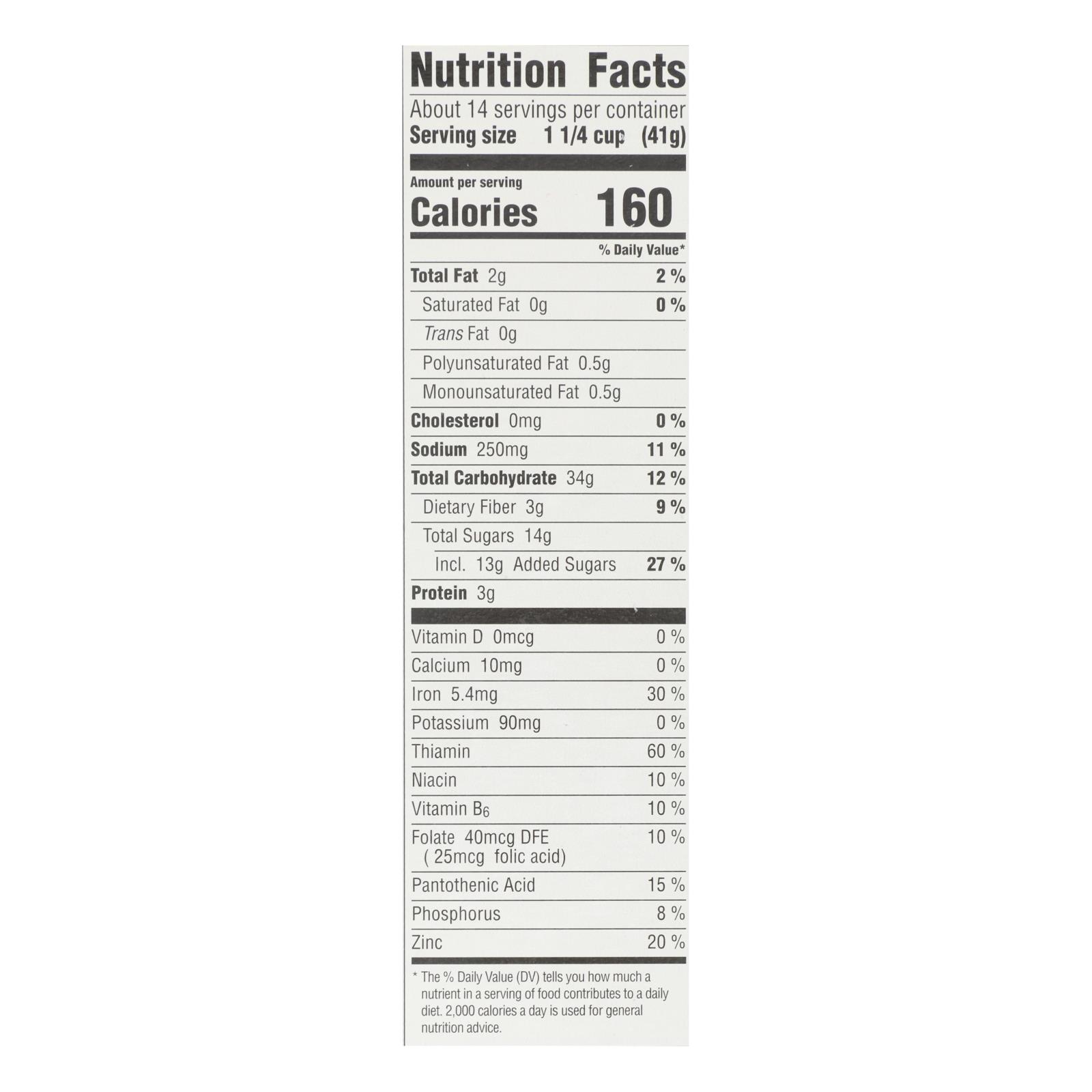 This cereal features whole grain oat flour, a source of fiber and essential nutrients, and is sweetened with real honey for a naturally delightful taste. It also includes a blend of essential vitamins and minerals, such as iron (from ferric orthophosphate), B vitamins, and zinc, which are commonly included to help support overall wellness and daily vitality.