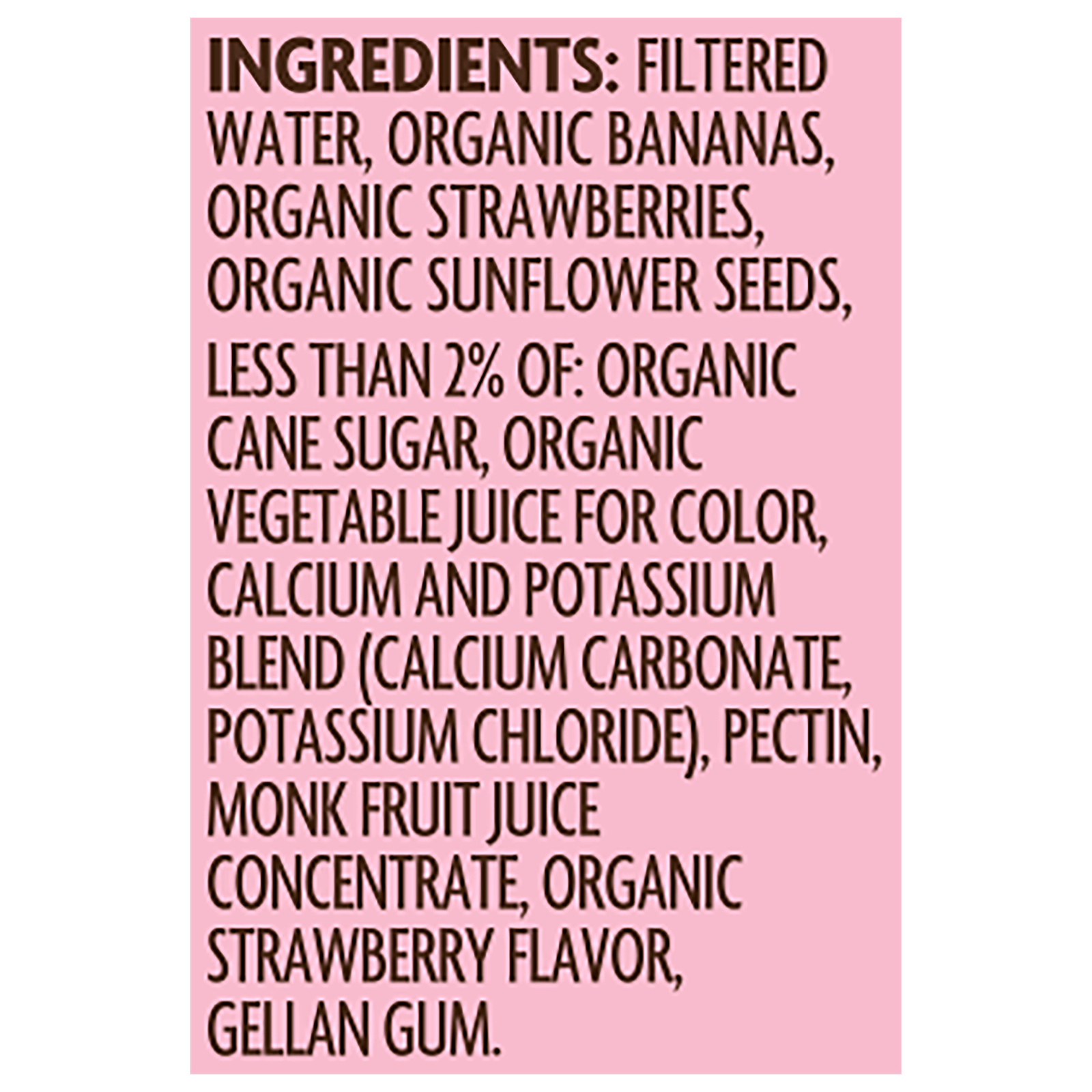 Organic bananas, organic strawberries, and other 95%+ organic ingredients. (Full ingredient list not provided in available data.)