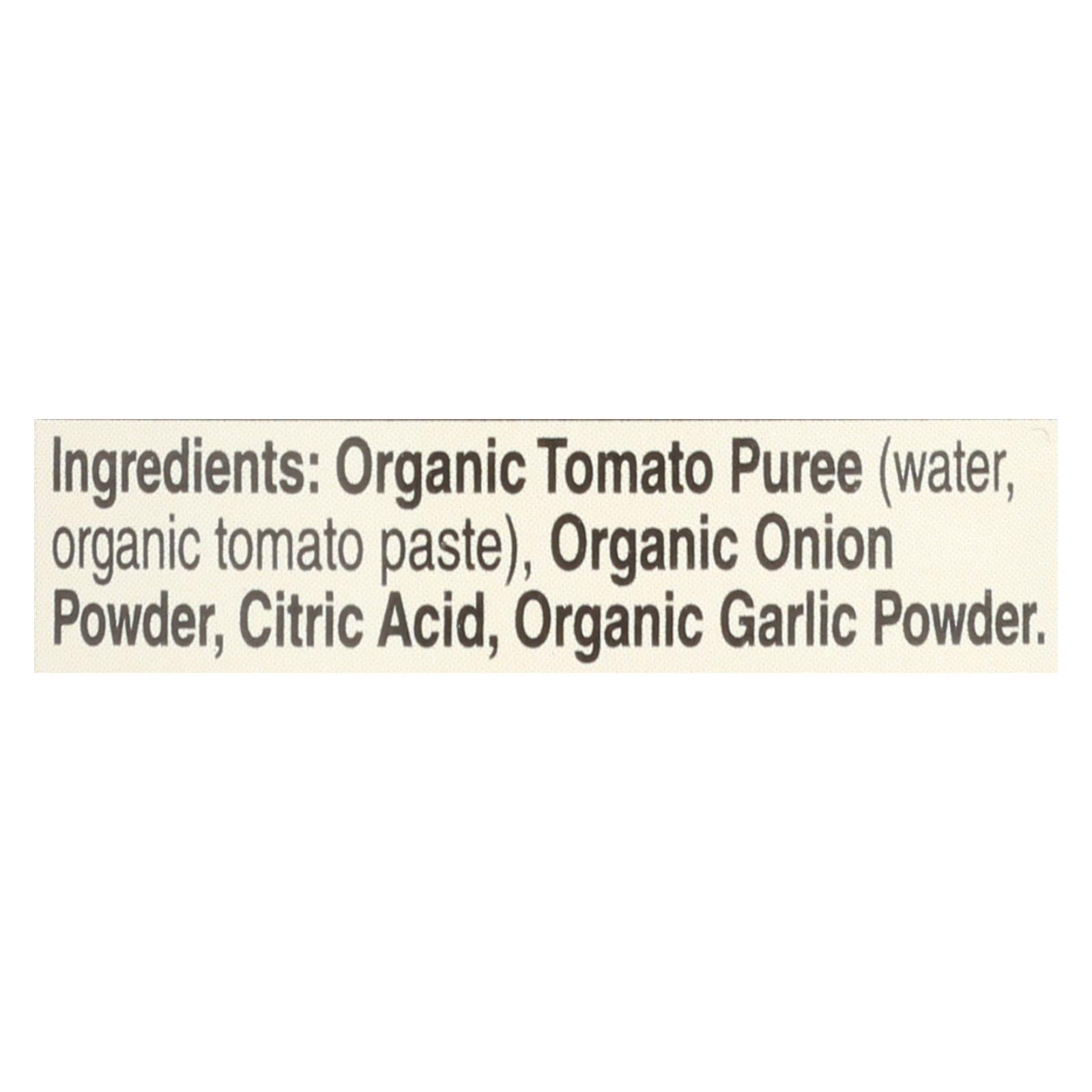 Organic tomato puree (water, organic tomato paste), organic onion powder, citric acid, organic garlic powder.