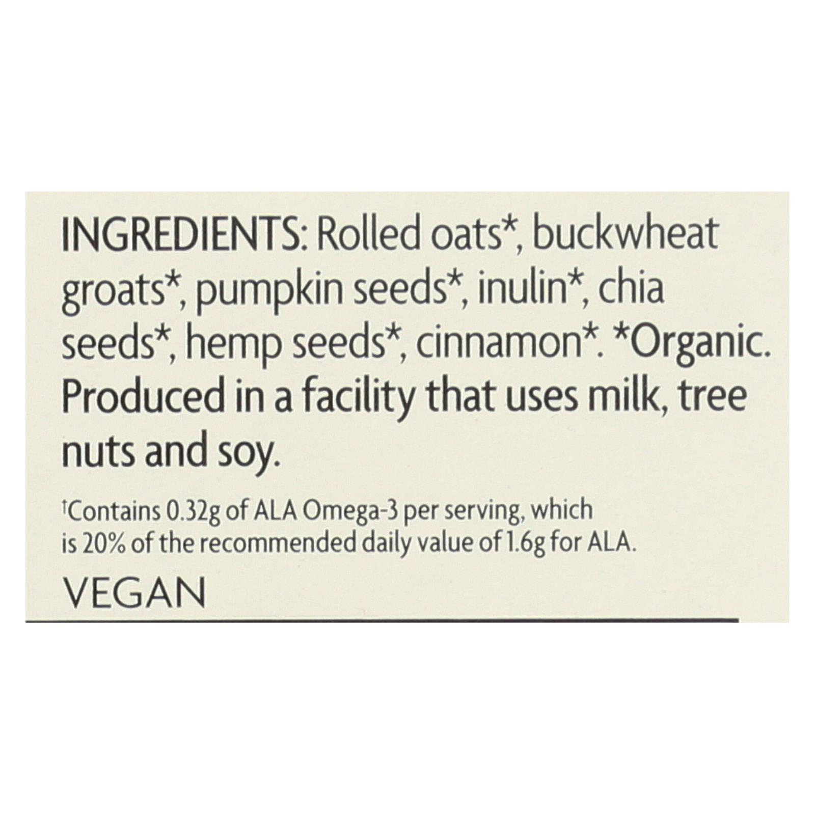 Each serving brings together rolled oats, buckwheat groats, pumpkin seeds, chia seeds, and hemp seeds-all USDA certified organic and Non-GMO Project Verified. Chia and hemp seeds offer a plant-based source of omega-3 fatty acids, while cinnamon is commonly used in herbal wellness for its comforting aroma and flavor. With 31 grams of whole grains per serving, this oatmeal helps support sustained energy throughout your morning.