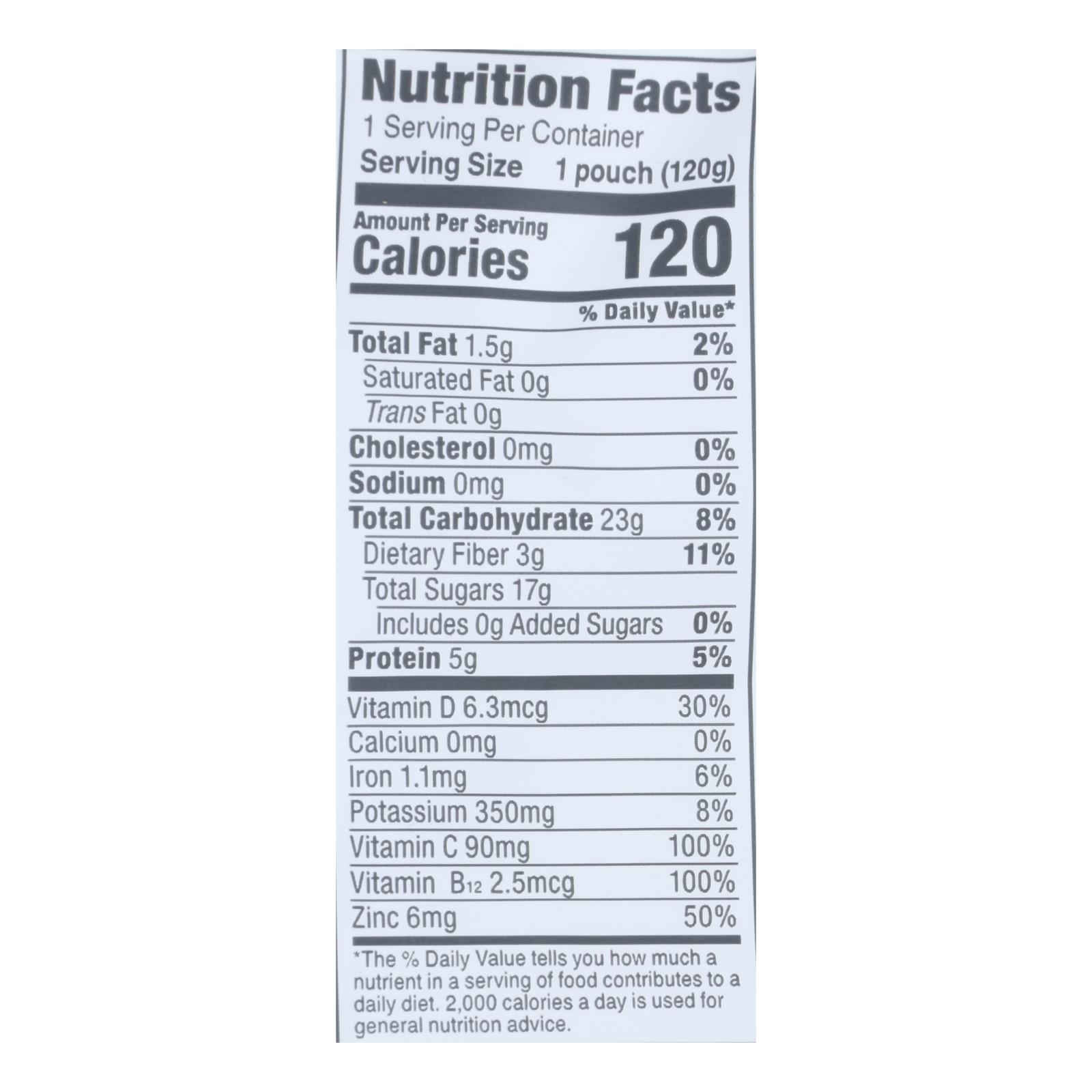 Noka Smthi SPF Strawberry-Banana is a 95%+ organic, vegan, gluten-free smoothie pack of six 4.22 oz servings made in Utah, USA