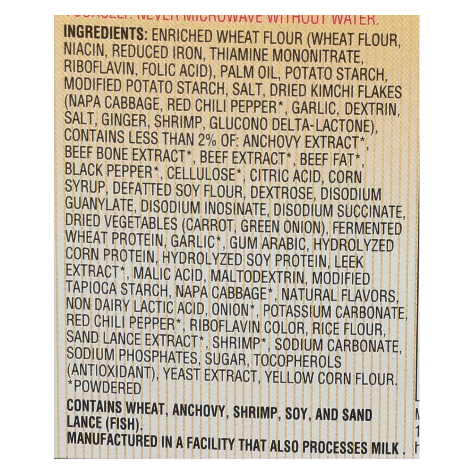 Noodles, vegetables, real kimchi, rich broth. (For a full ingredient list, please refer to the product packaging.)