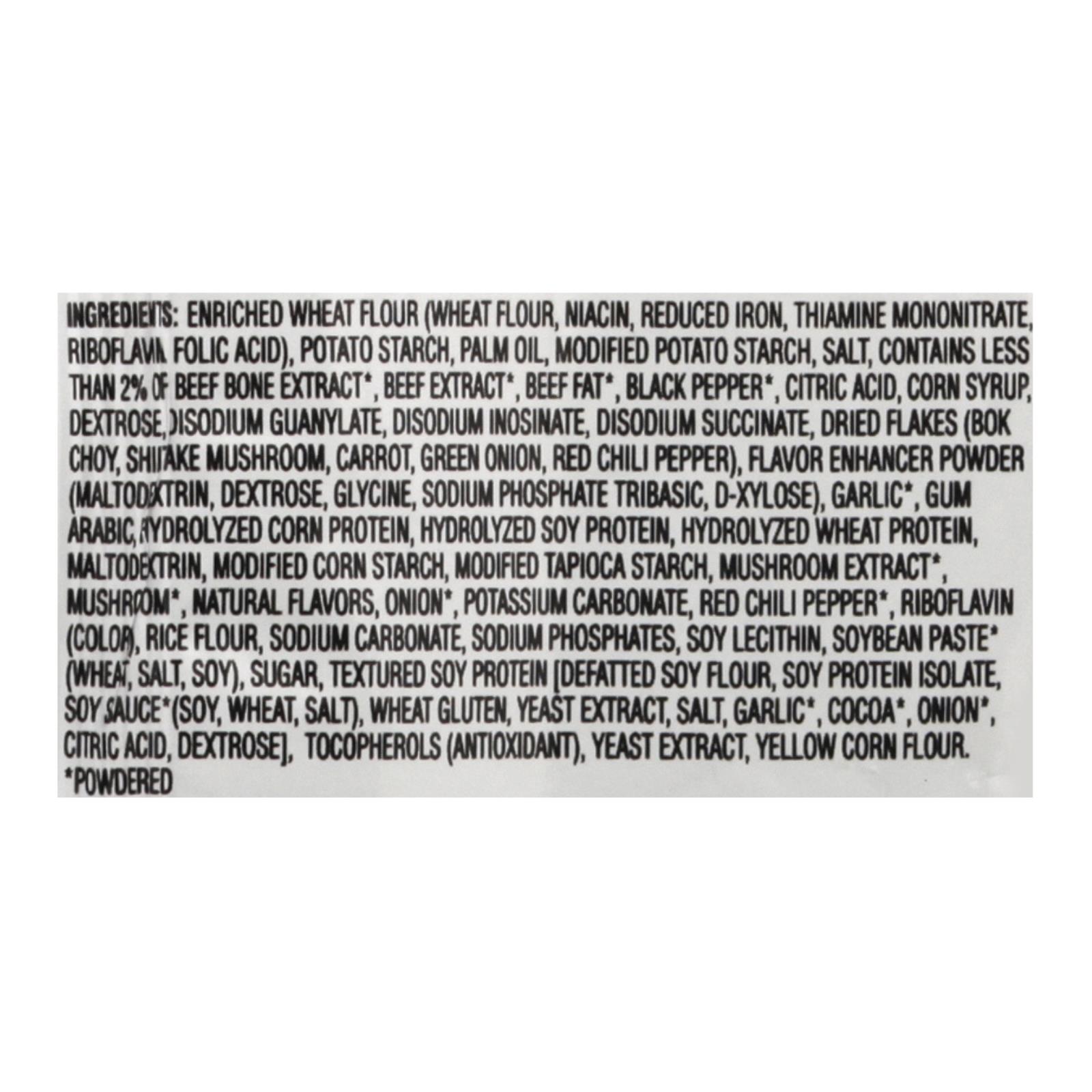 Wheat flour, potato starch, palm oil, salt, soy sauce powder, red chili pepper, garlic, onion, mushroom extract, and other natural flavors. (For a complete and up-to-date ingredient list, please refer to the product packaging or the official Nongshim USA website.)