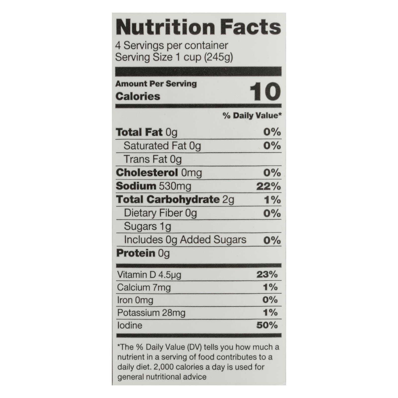 Water, organic carrot, organic onion, organic celery, sea salt, organic cane sugar, yeast extract, organic onion powder, natural flavor, organic olive oil, organic carrot juice concentrate, organic garlic powder, organic spices, Pacific kombu, kelp extract, salt, organic mushroom powder.