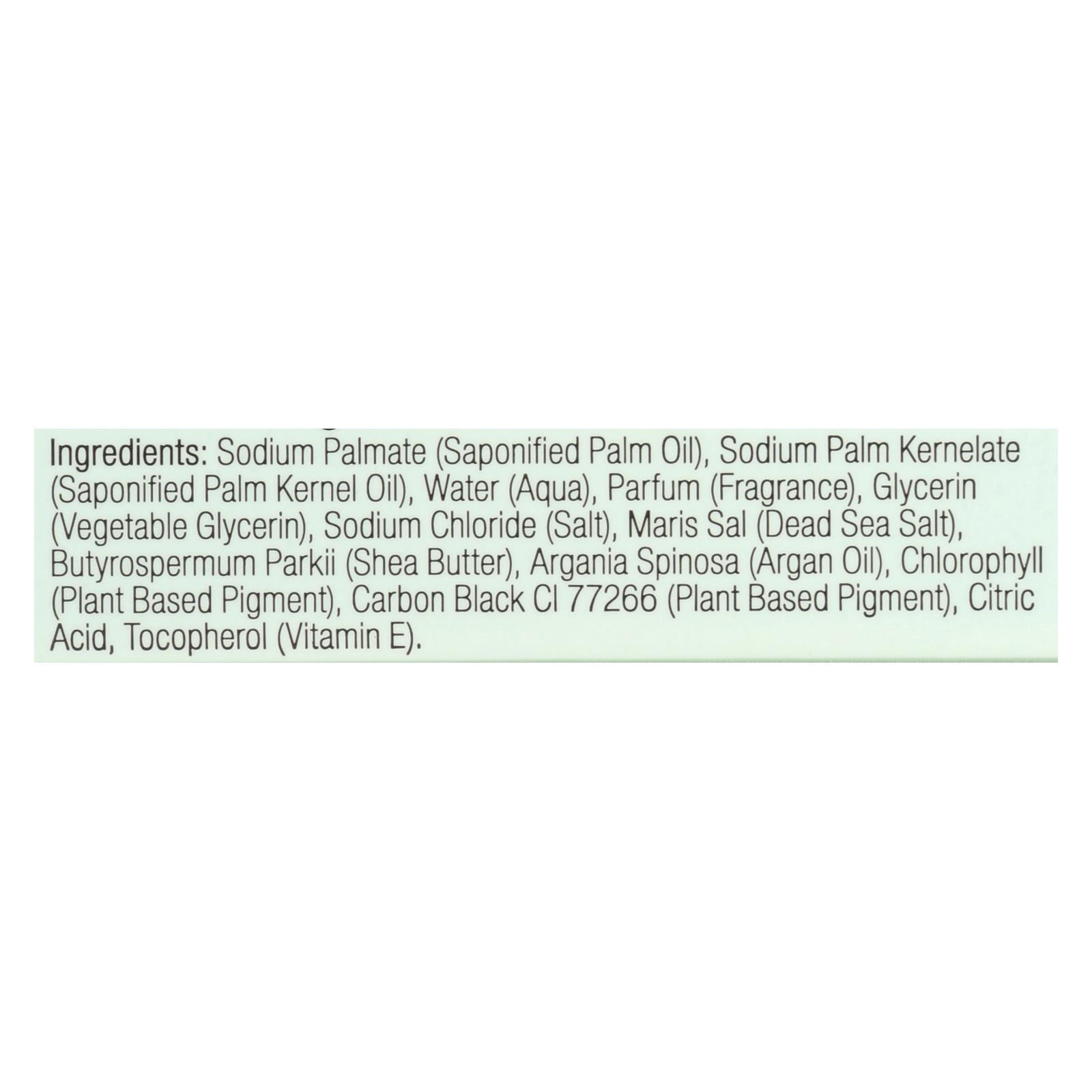 ingredients : sodium palmate;saponified palm oil;sodium palm kernelate;saponified palm kernel oil;water;aqua;parfum;fragrance;glycerin;vegetable glycerin;sodium chloride;salt;maris sal;dead sea salt;butyrospermum parkii;shea butter;argania spinosa;argan oil;chlorophyll;plant based pigment;carbon black ci 77266;citric acid;tocopherol;vitamin e