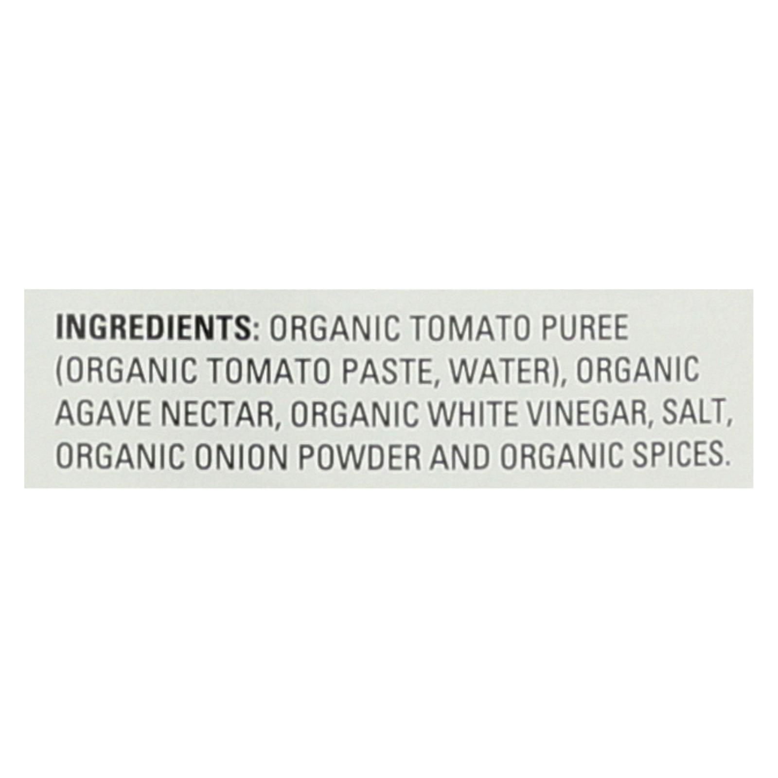 Organic tomato puree, organic tomato paste, water, organic agave nectar, organic white vinegar, salt, organic onion powder, organic spices.