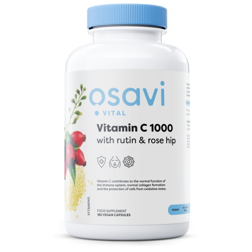 Osavi – Vitamin C1000 with Rutin & Rose Hip – 180 vegan caps is a high-quality dietary supplement designed to support overall health and well-being. Each vegan capsule is packed with essential nutrients to boost immunity and promote skin health.