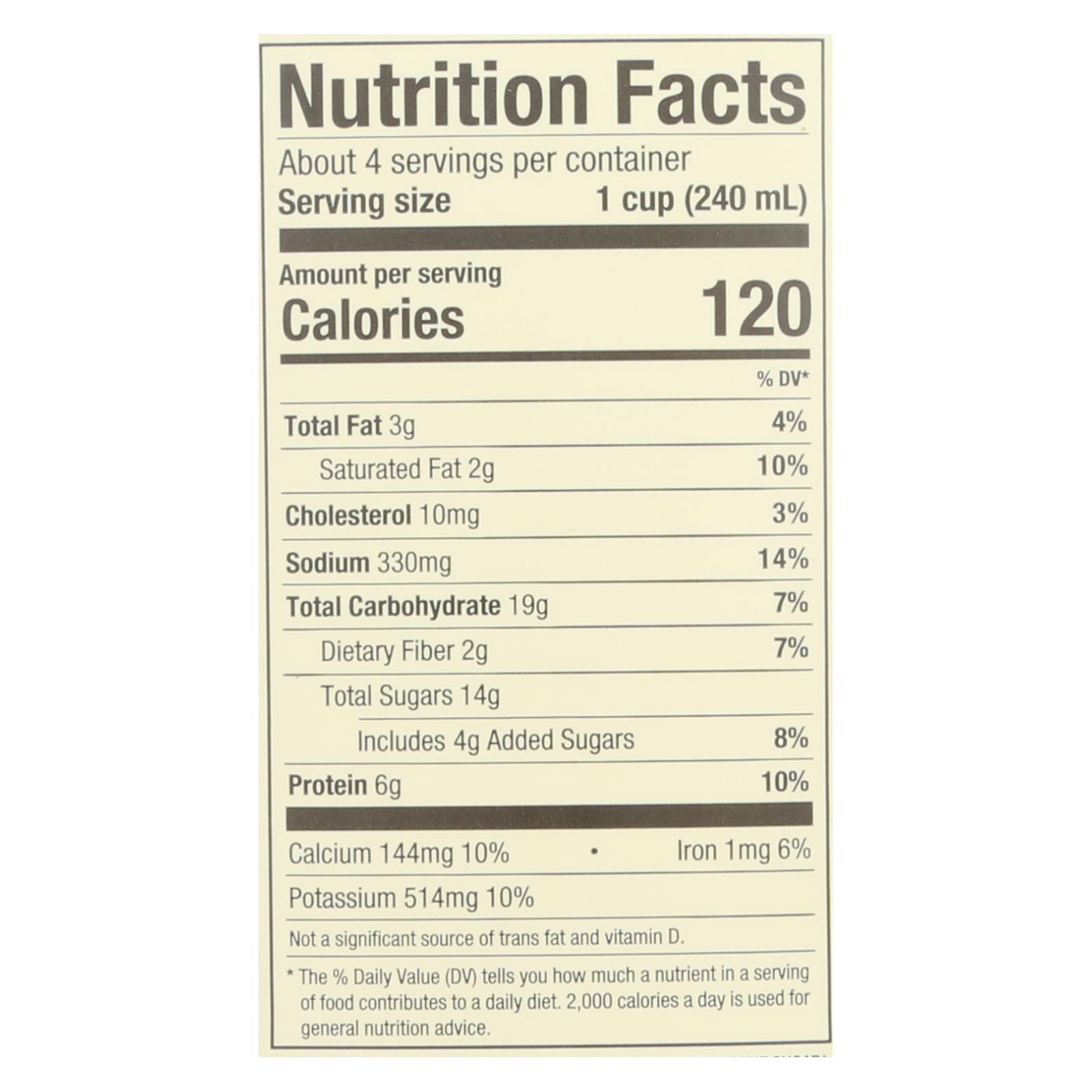- Serving size: 1 cup (four servings per 32 fl oz container)