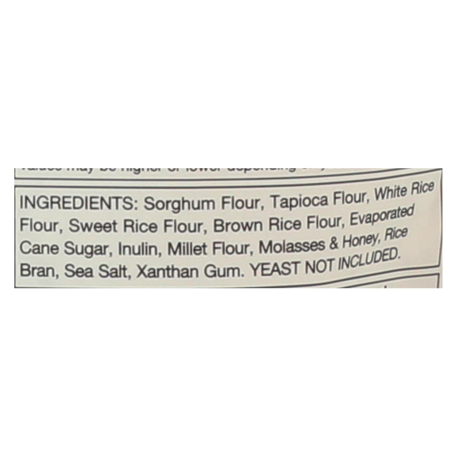 Sorghum flour, tapioca flour, white rice flour, sweet rice flour, brown rice flour, evaporated cane sugar, inulin, millet flour, honey, rice bran, sea salt, xanthan gum.