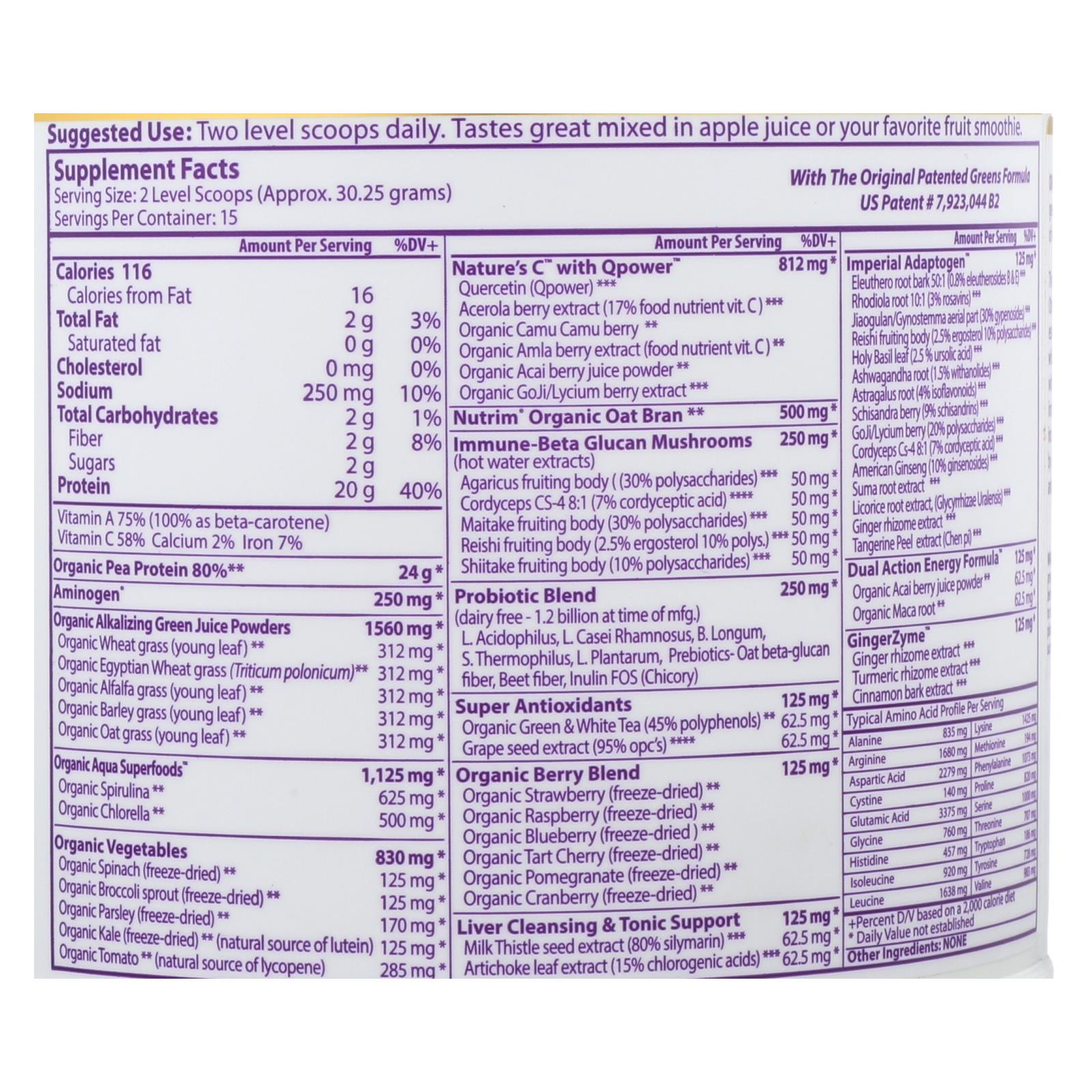 Paradise orac energy protein & greens powder is a powdered supplement that tastes great in apple juice or fruit smoothies. Each container holds 15 servings of 20 g. Of protein and the antioxidant power of over 24 servings of fruits and vegetables. This great tasting dietary supplement is completely vegan, using pea protein. With increase digestibility and amino acid absorption, this is a great addition to a healthy diet.
